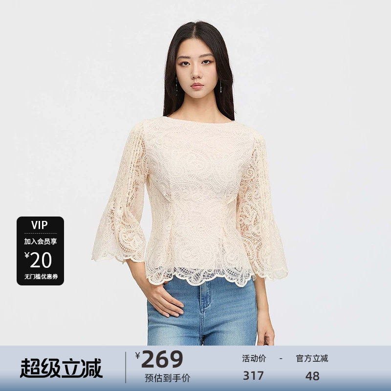 99¥ CZ005 3ONQ5iTX7Ao¥ https://m.tb.cn/h.iraNbyO sdeer圣迪奥女装25新品复古圆领镂空绣花喇叭袖上衣S253Z3205 --------------------- 【原售价】599元 【现售价】317元。