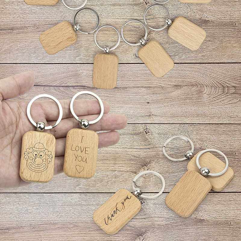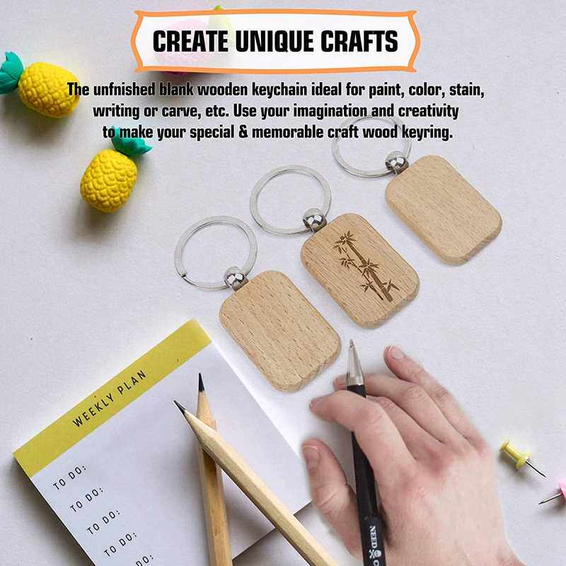 📚 60Pcs Blank Rounded Rectangle Wooden Keychain Diy Wooden Key