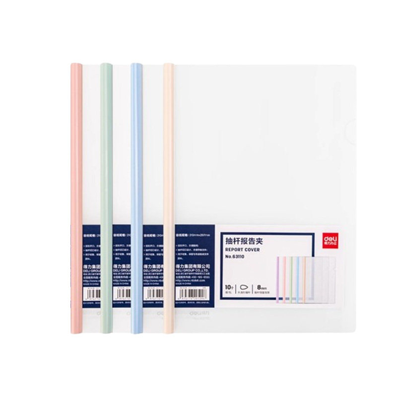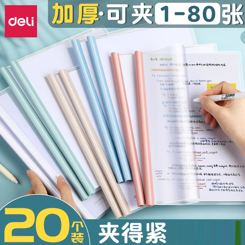 📚 得力学生抽杆夹A4试卷夹加厚文件夹包书皮插页夹子文具大容量透明资料夹水滴杆收纳册办公档案报告拉杆彩色夹