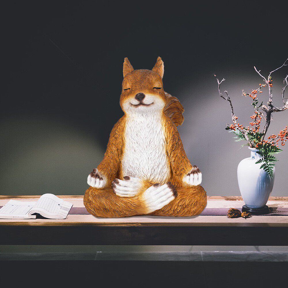📚 创意打坐松鼠摆件 坐禅松鼠树脂工艺品 动物摆件家居室内艺术装饰