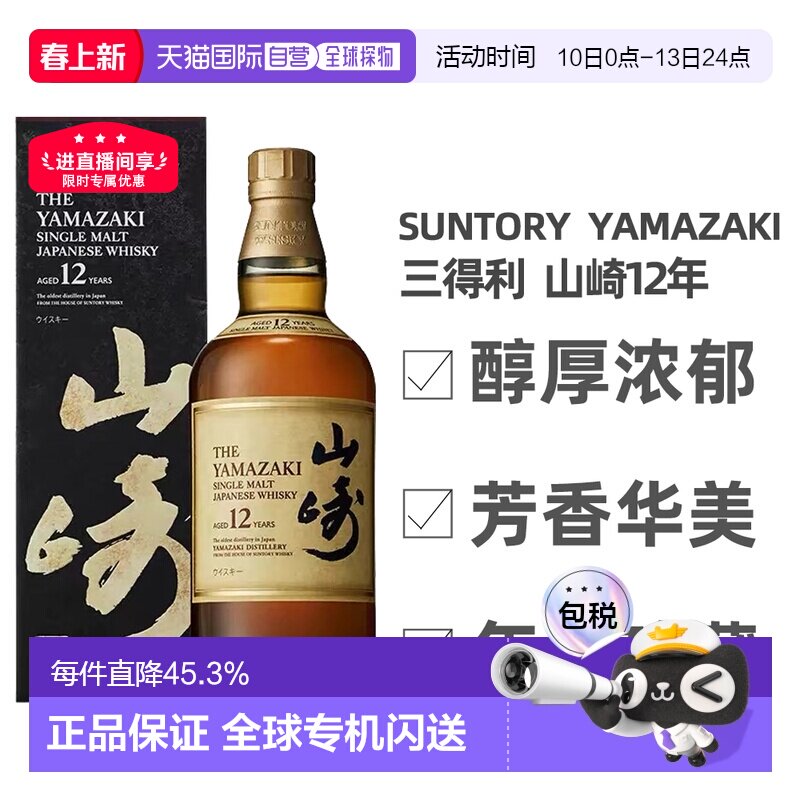 📚 日本直邮SUNTORY三得利山崎12年单一麦芽威士忌礼盒款700ml