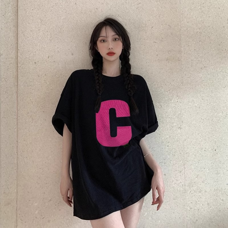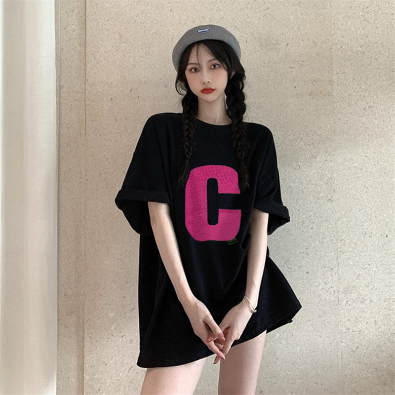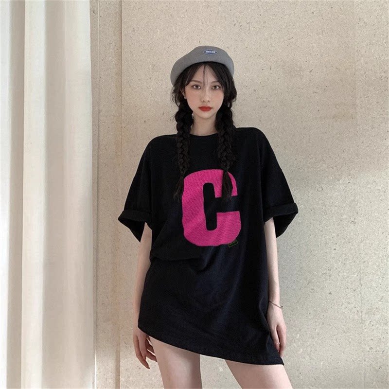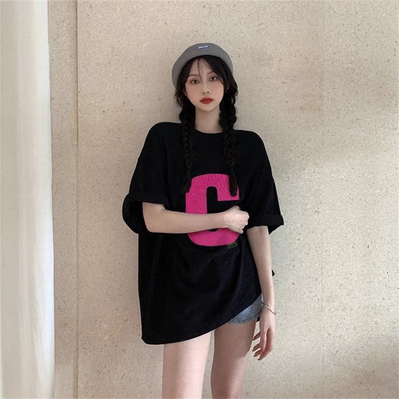 📚 夏天ins潮牌短袖t恤女宽松款上衣胖mm大码200斤显瘦辣妹上衣女
