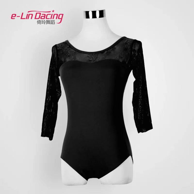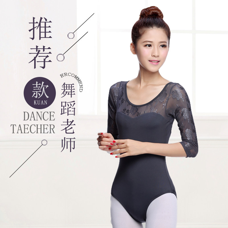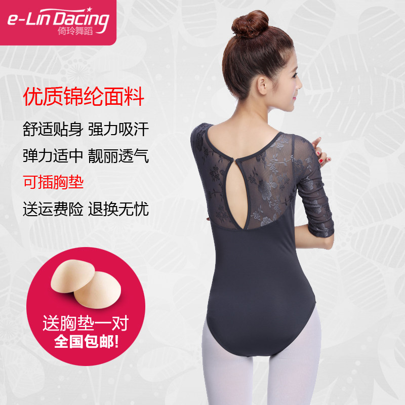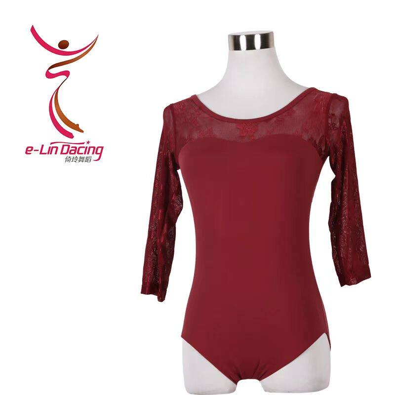 📚 芭蕾舞连体服练功形体操习一女成人蕾丝长袖基础训艺考空高跨体服