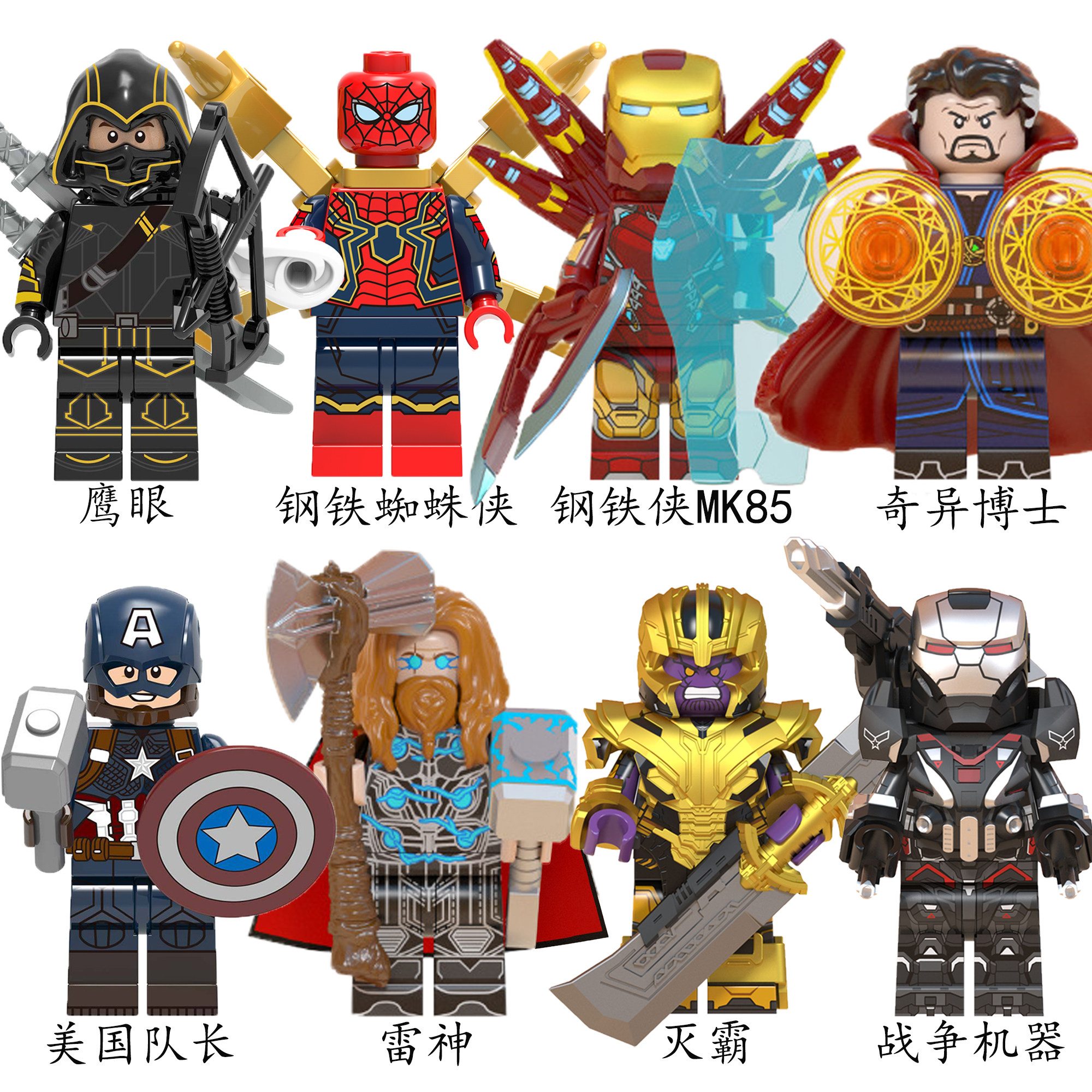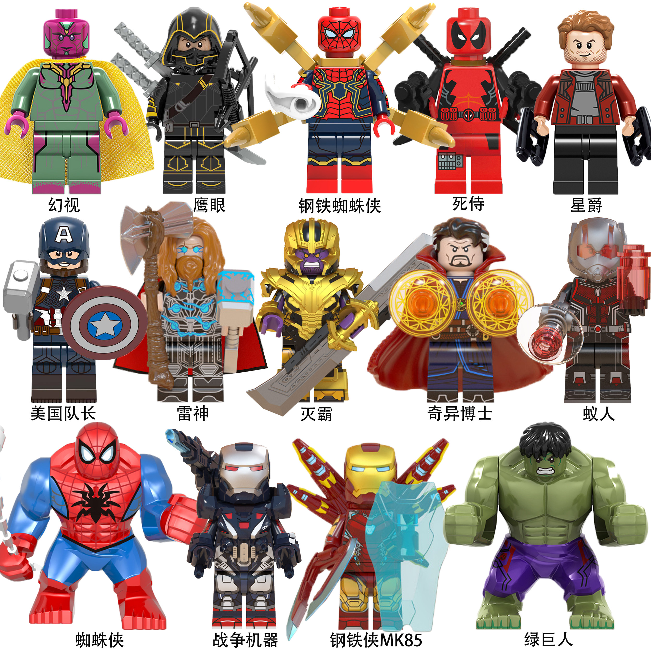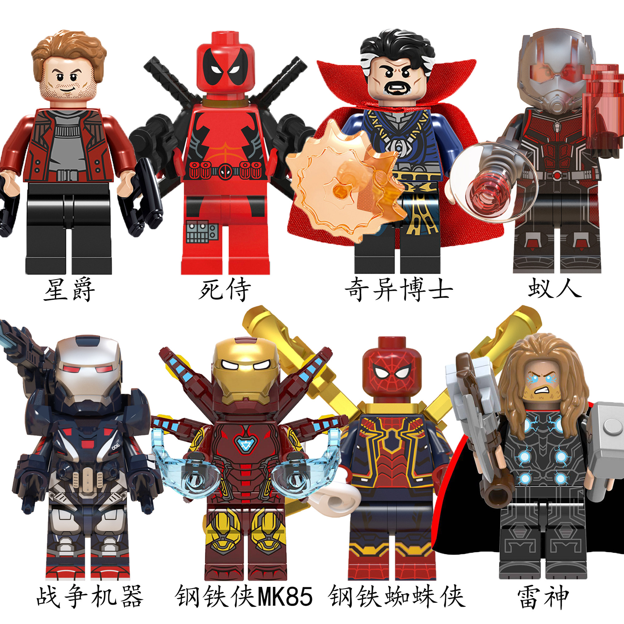 📚 中国积木漫威钢铁侠MK85蜘蛛侠奇异博士黑豹星爵蚁人小人仔玩具
