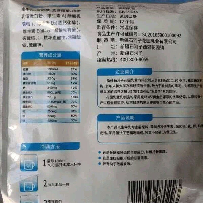 📚 新疆特产石河子143花园奶粉军垦情钙铁锌强化奶粉四月新货