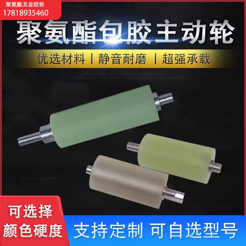 📚 聚氨酯包胶主动轮驱动轴输送滑轮可定制铁芯外包胶辊耐磨动力滚筒