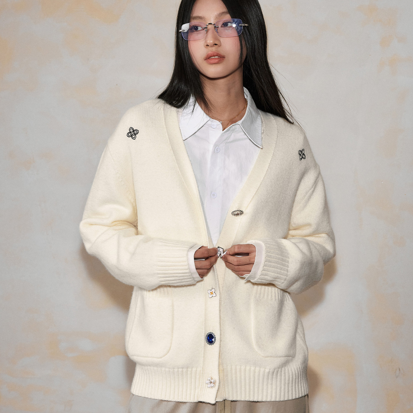 📚 MEDM 简约纯色纽扣休闲开衫毛衣美式宽松情侣同款V领针织衫外套秋