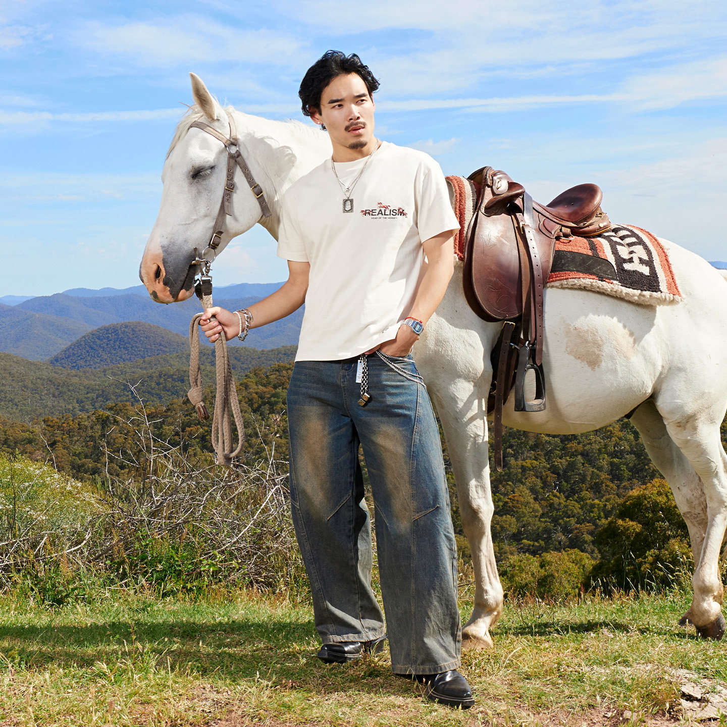 📚 REALISM马年限定澳洲潮牌短袖T恤 米色 简约复古 潮牌半袖 新款