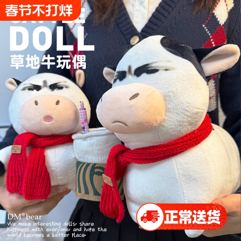 📚 新款搞怪草地牛玩偶牛哞哞毛绒公仔抽象牛牛表情包生日礼物送男生
