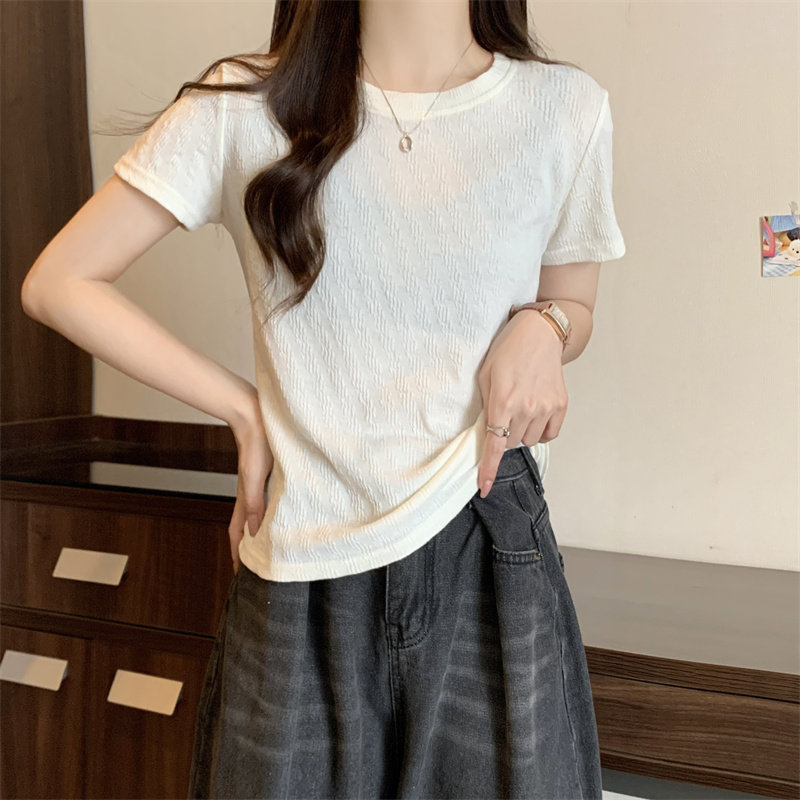 📚 小个子短款正肩短袖T恤女夏装2026新款修身显瘦潮牌半袖别致上衣