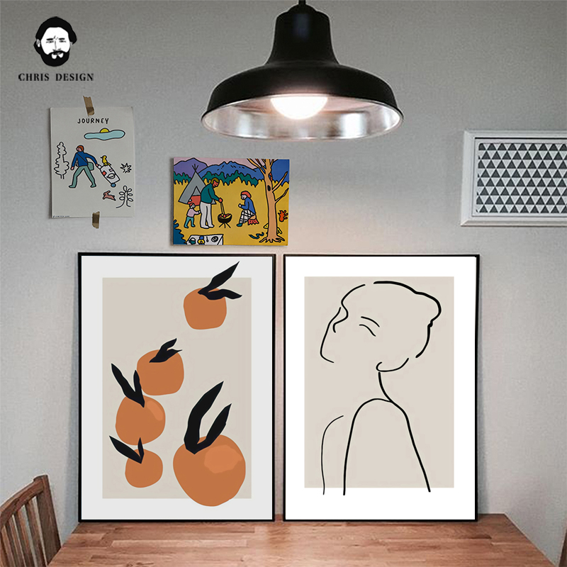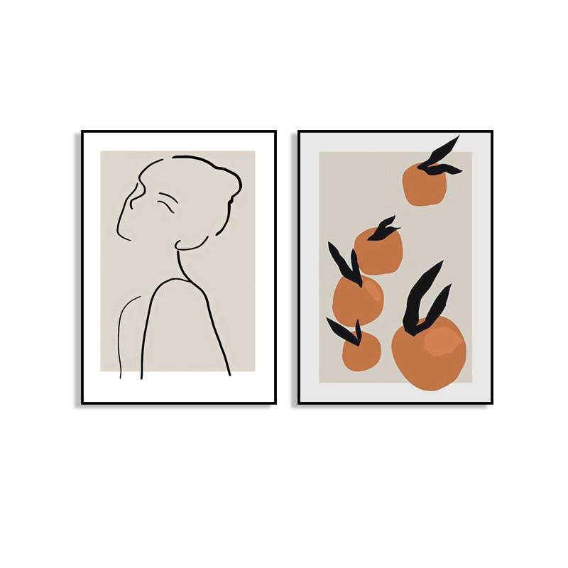 📚 ins北欧风文艺小清新装饰画 复古小众抽象线条简笔人物橘子挂画