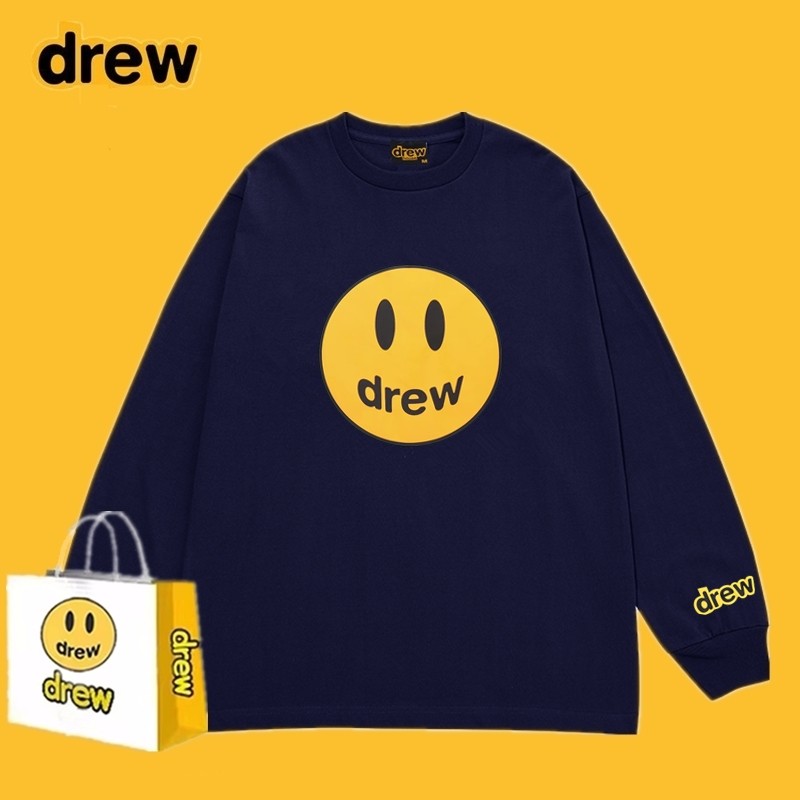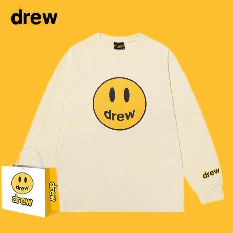 📚 Drew笑脸长袖T恤男贾斯汀比伯网红同款FOG高街潮流宽松情侣打底衫