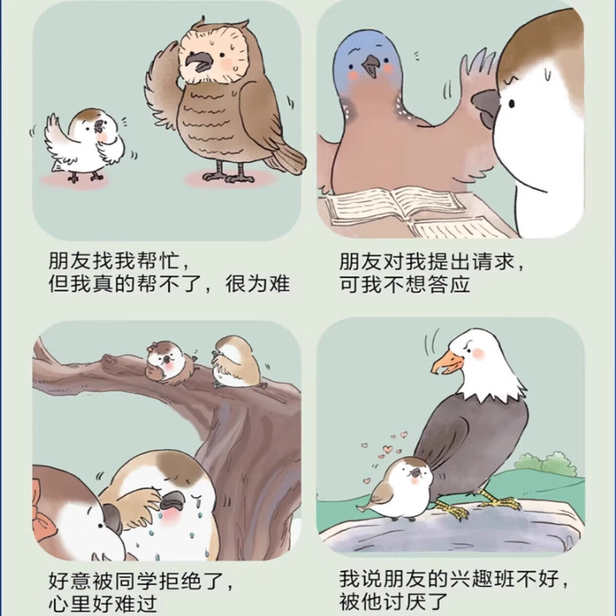 👀接下来,让我们聊聊这本书的内容吧!这套绘本涵盖了傻鸟学校的生活和学习场景,通过一系列有趣的小漫画,引导孩子了解社交规则和边界感。同时,它还告诉孩子如何营造一个既不委屈自己也不冒犯别人的社交环境。