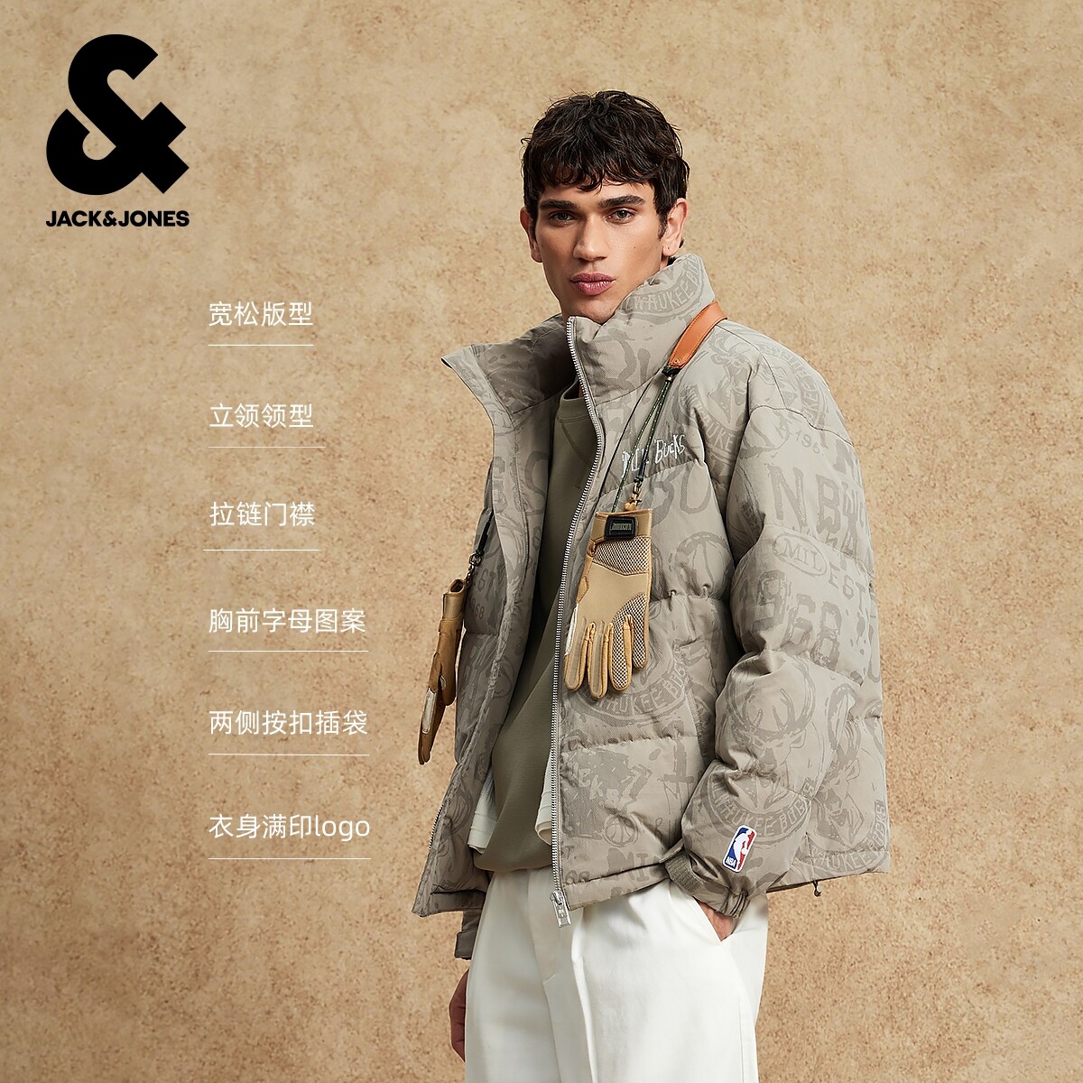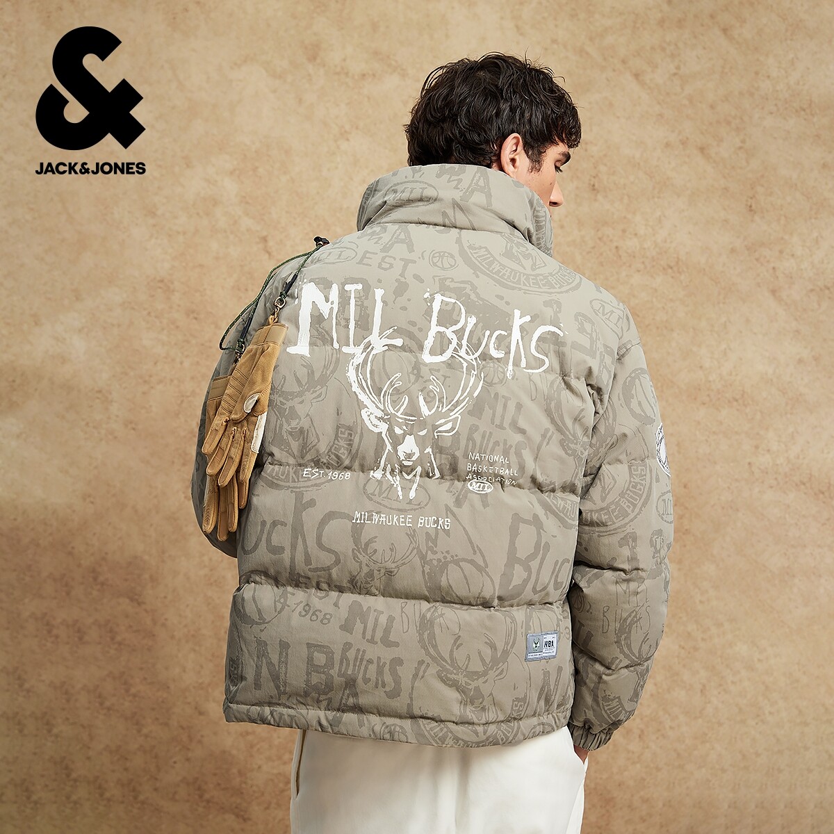 📚 杰克琼斯户外运动NBA联名雄鹿队新男装冬春季羽绒服字母满印外套