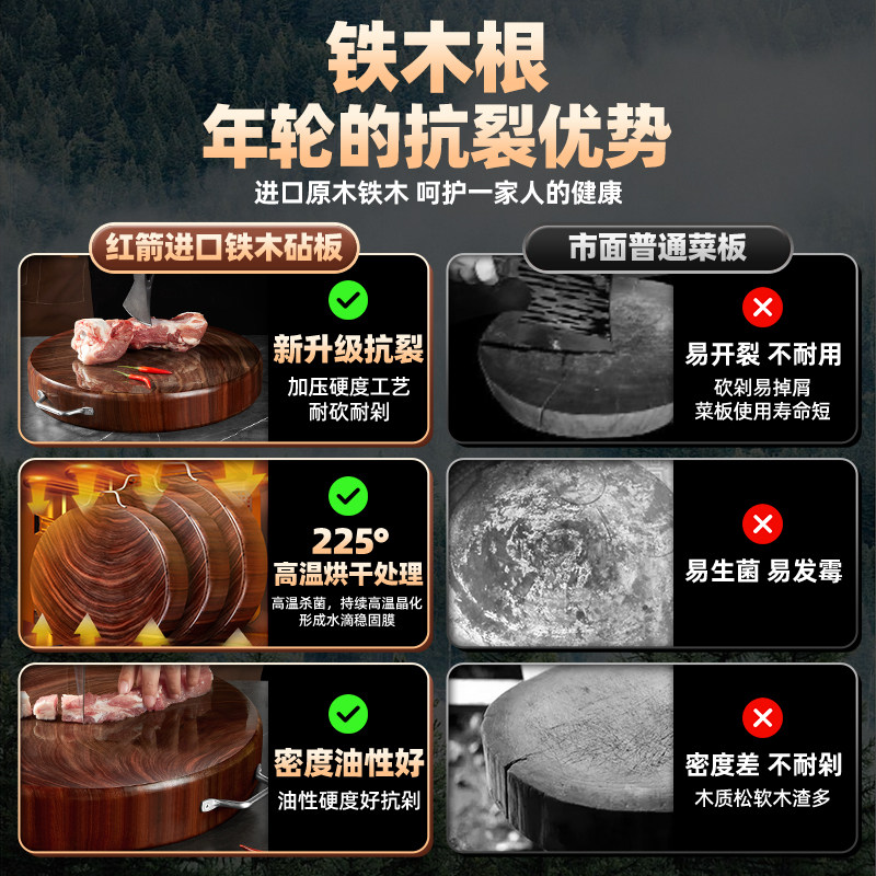 📚 黑铁木砧板菜板抗菌防霉家用切菜板实木案板厨房专用钻占板菜墩子