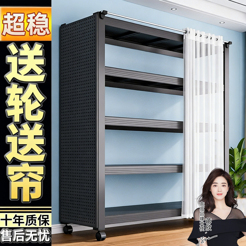 📚 带轮子洞洞板家用置物架多层可移动带防尘帘落地客厅收纳储物钢架