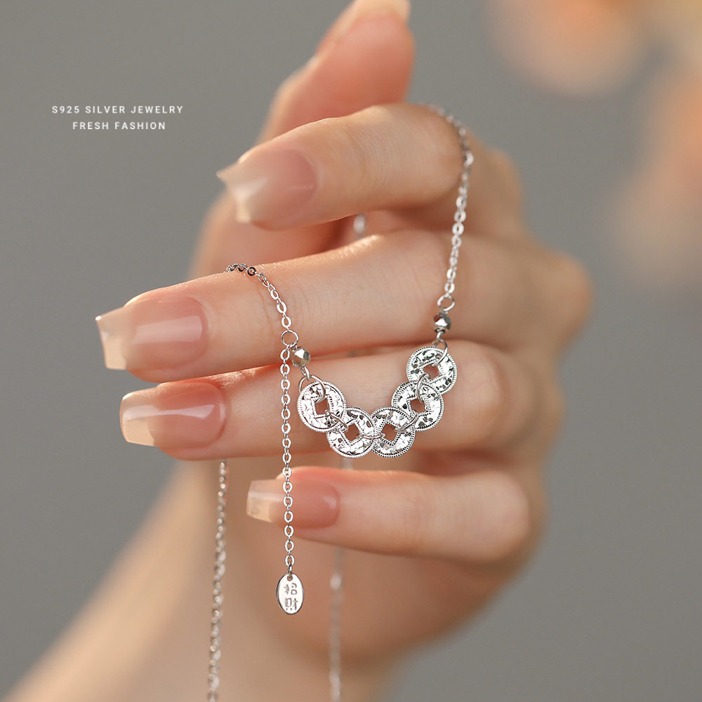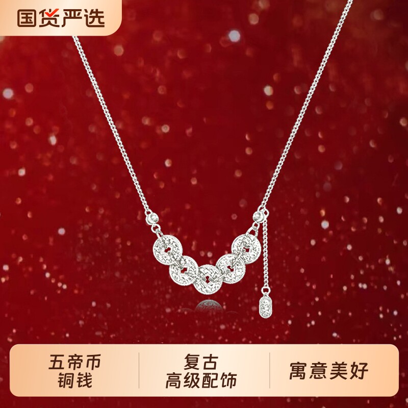 📚 生日送女友礼物S925银铜钱五帝钱币项链女高级感轻奢小众锁骨链