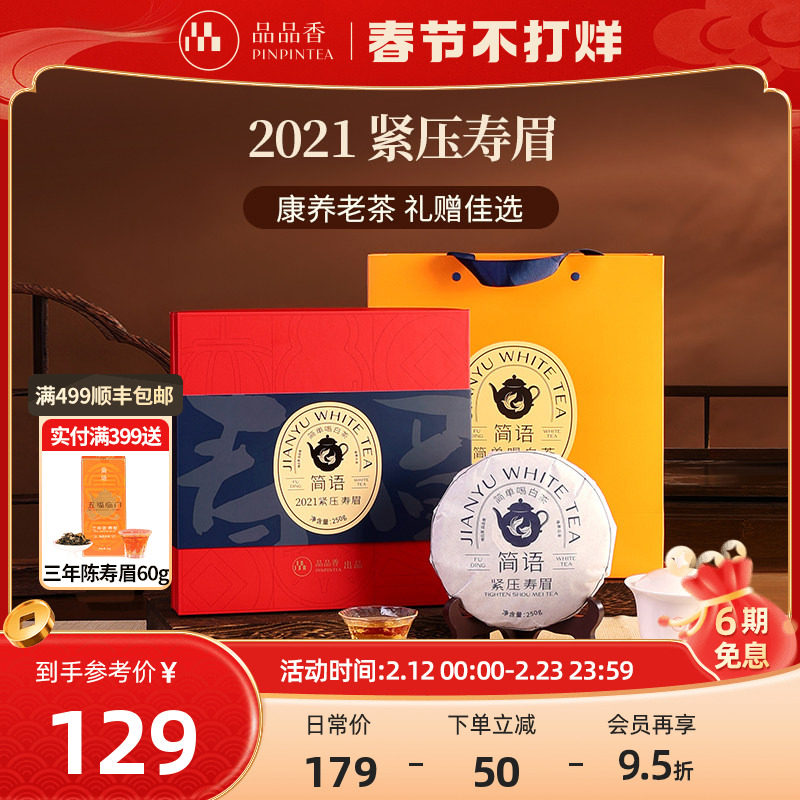 📚 品品香福鼎白茶2021老白茶寿眉茶叶礼盒装250g年货送礼官方旗舰店