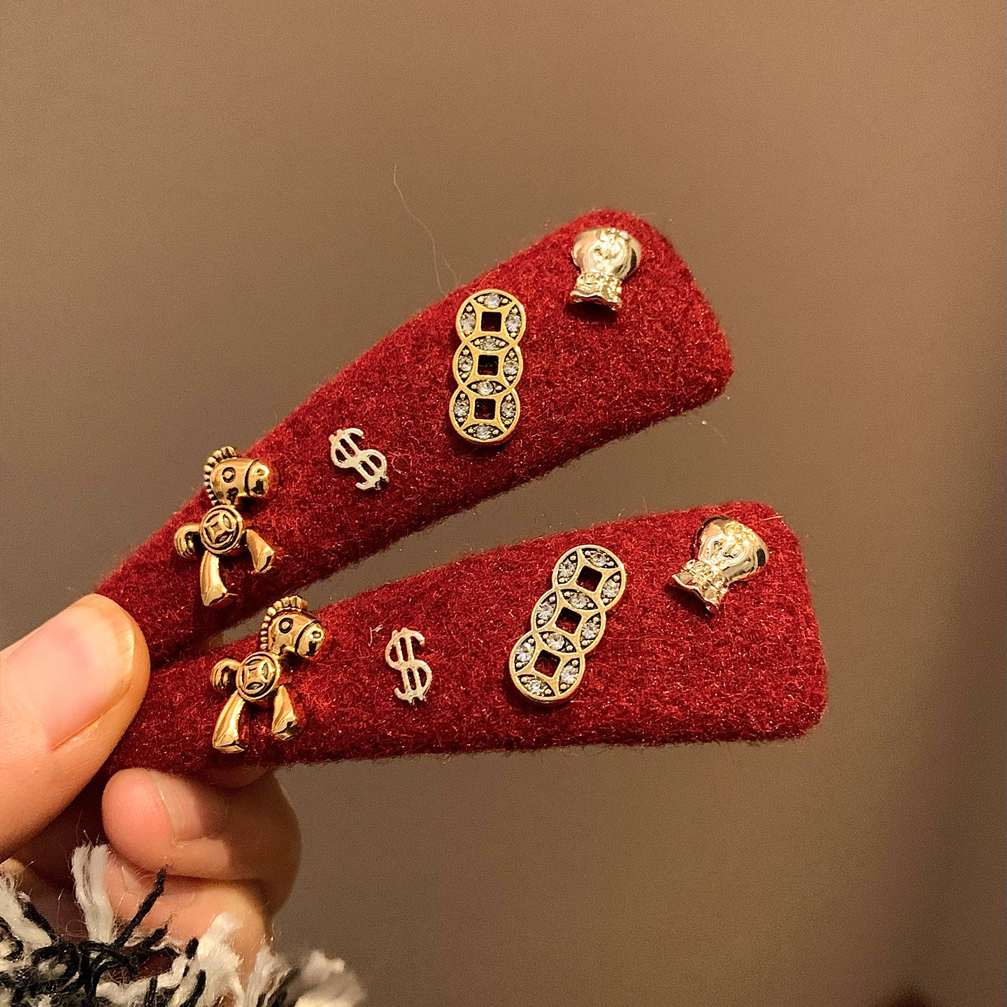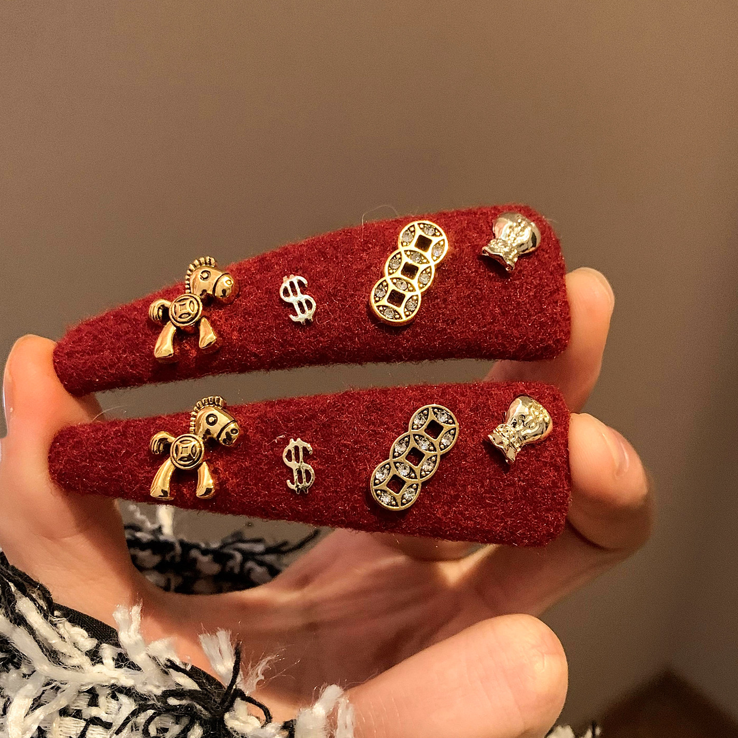 📚 马上有钱~红色小马发夹边夹侧边发卡女高级感新年本命头饰刘海夹