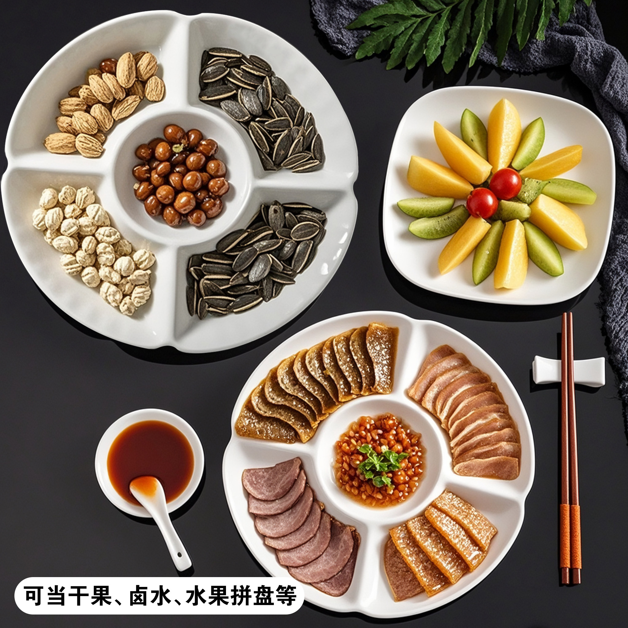 拼盘五格瓷盘卤味果盘