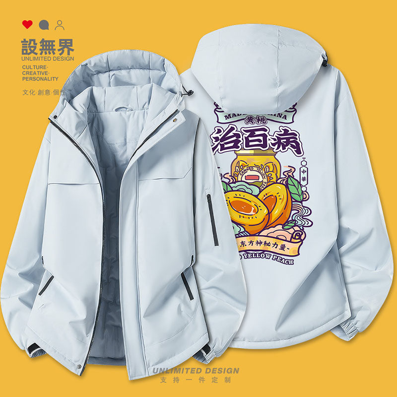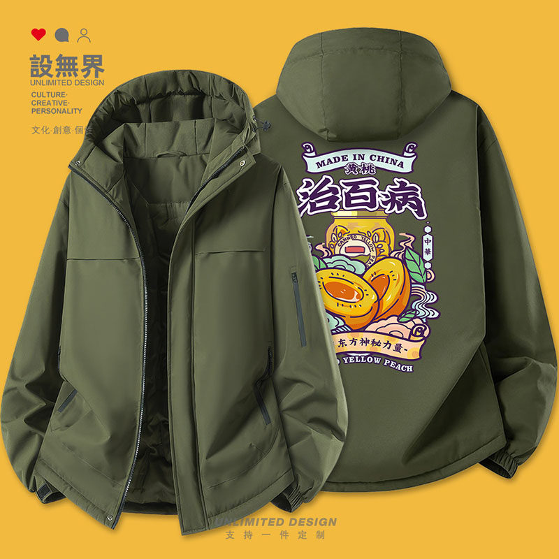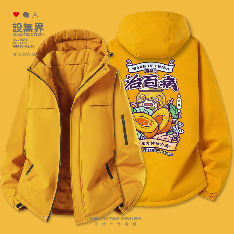 📚 原创黄桃罐头东北情怀偏方零食图案加厚棉服男女棉衣外套设 无界
