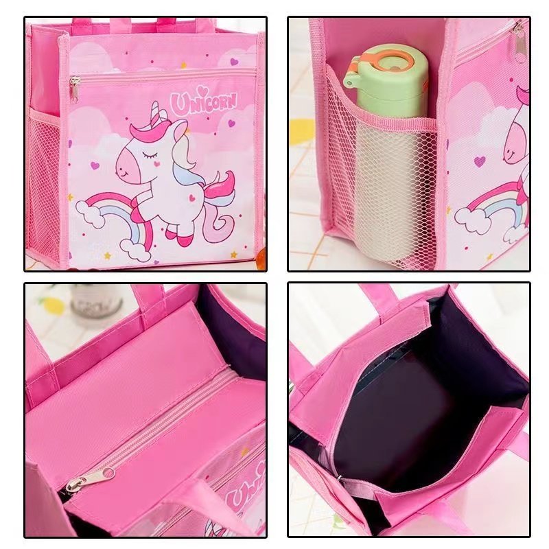 📚 可爱卡通防水小学生帆布饭盒袋子儿童便携午餐带饭便当大手提拎包