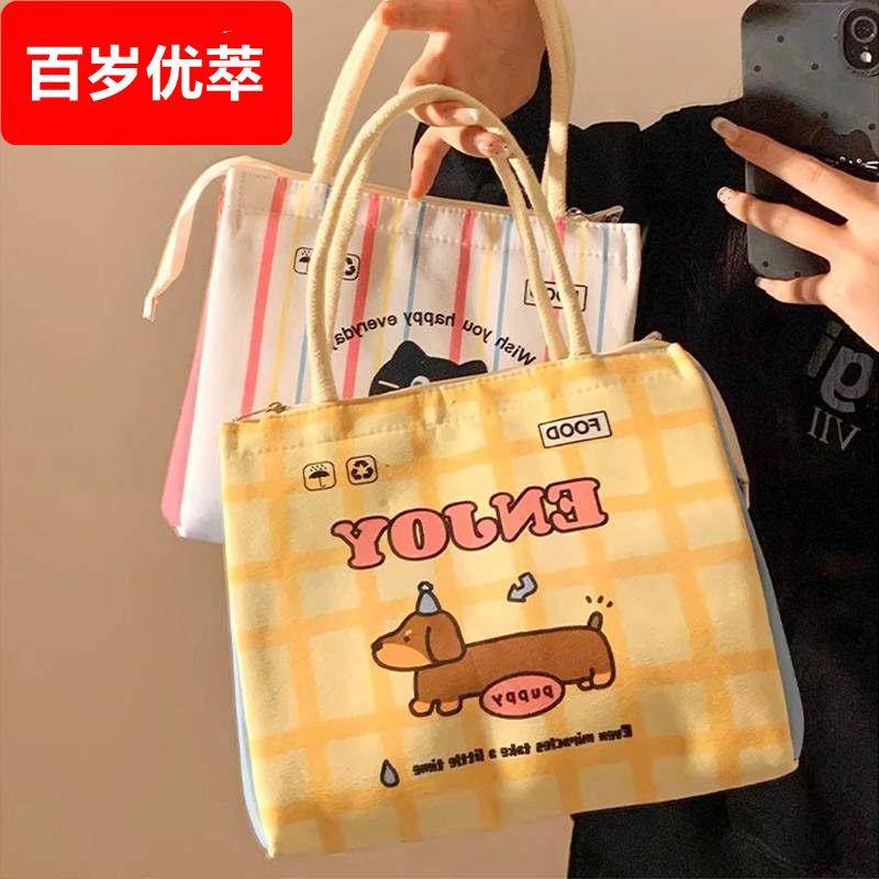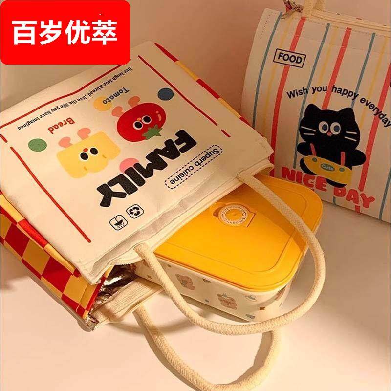 📚 可爱饭盒手提袋子学生上班族午餐带饭保温袋便当包外出便携野餐包
