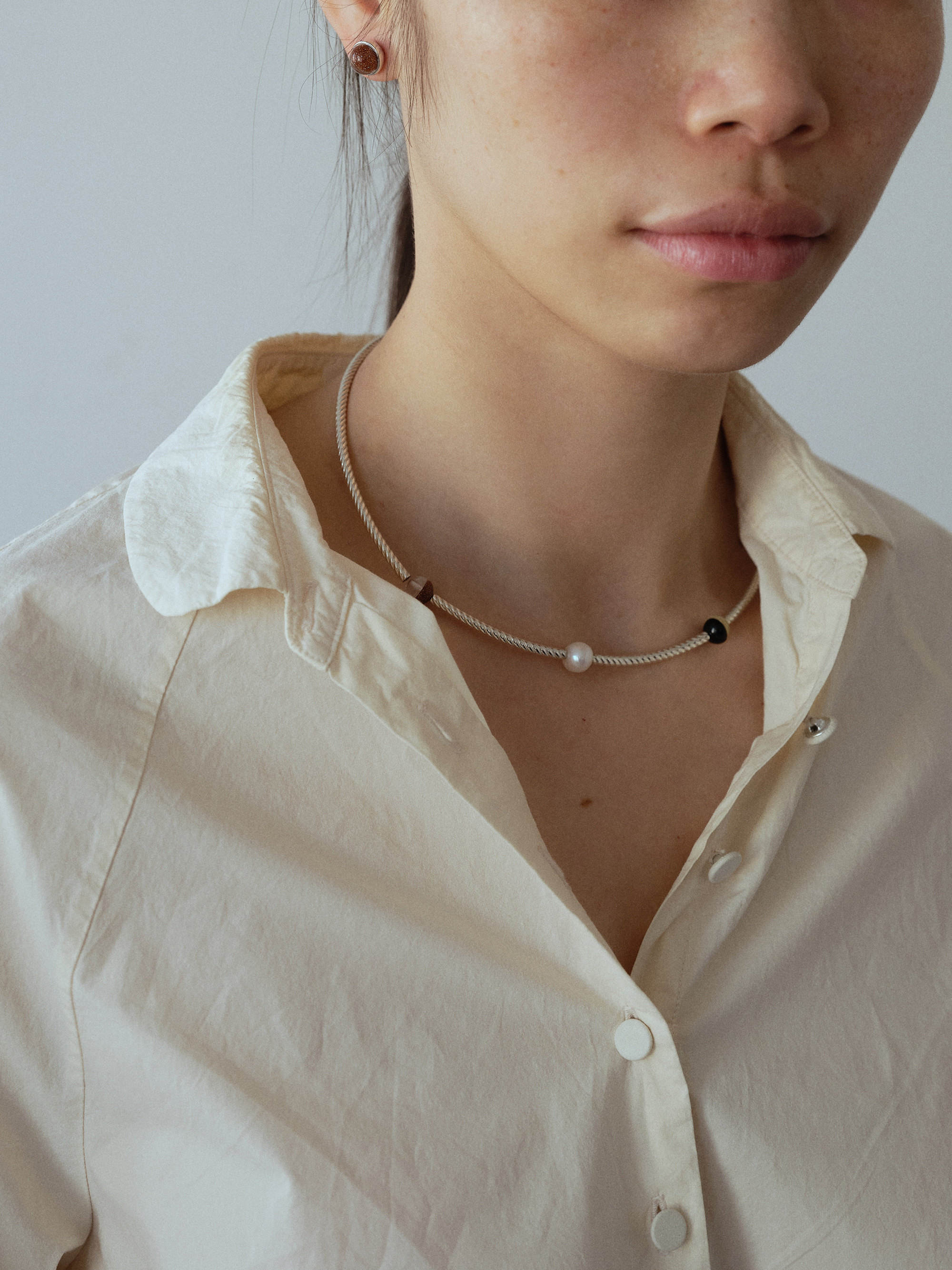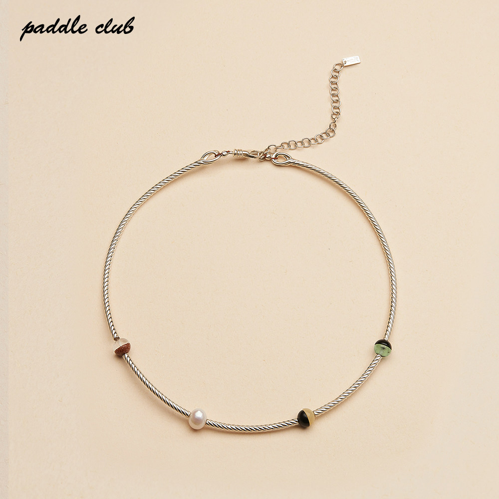 📚 paddle club 拼接石珠银圈环形项链