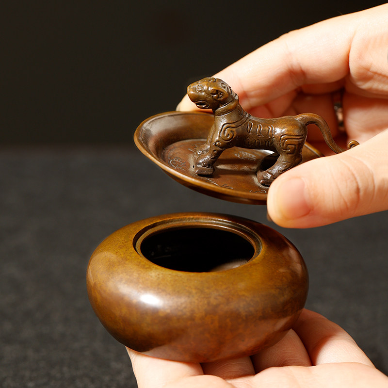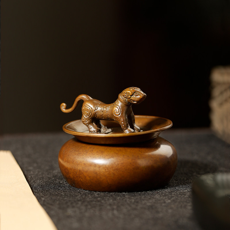 📚 青铜 錞于架笔水丞 铜镇纸镇尺 中国风创意仿古青铜器 压纸文镇 文房四宝摆件