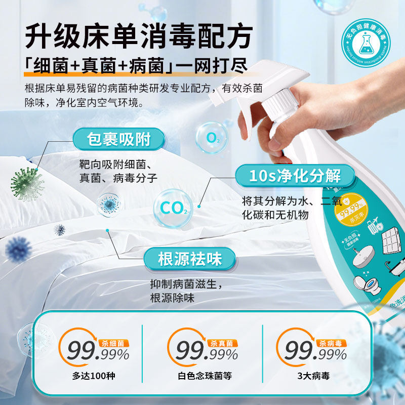 🍃首先说说这款产品的使用体验。每次使用都感觉像给家居环境进行了一次深度清洁。特别是在这个高温潮湿的季节,对于衣物、床单等物品的消毒需求日益凸显。这款喷雾真的是让我惊喜连连!