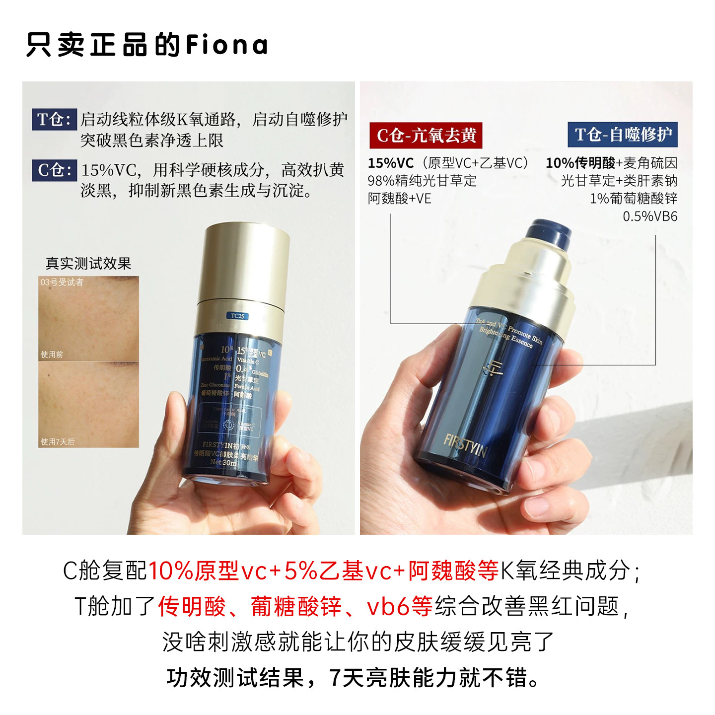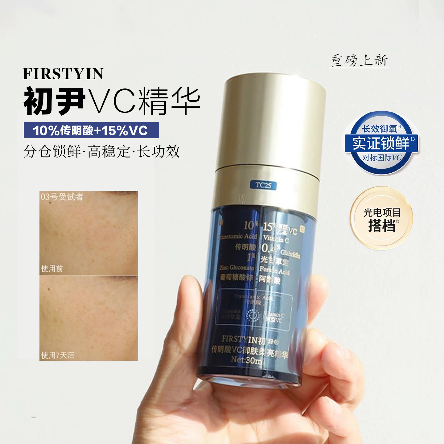 📚 初尹新品传明酸王者VC御肤柔亮精华30ml去黄气提亮淡红