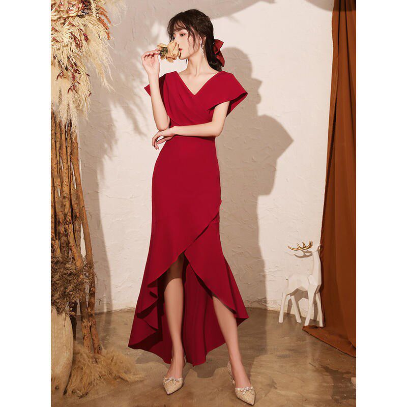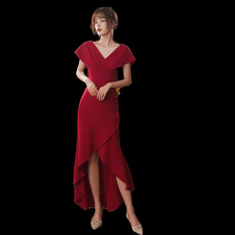 📚 敬酒服新娘2024新款红色修身鱼尾裙高级感订婚结婚小个子晚礼服女