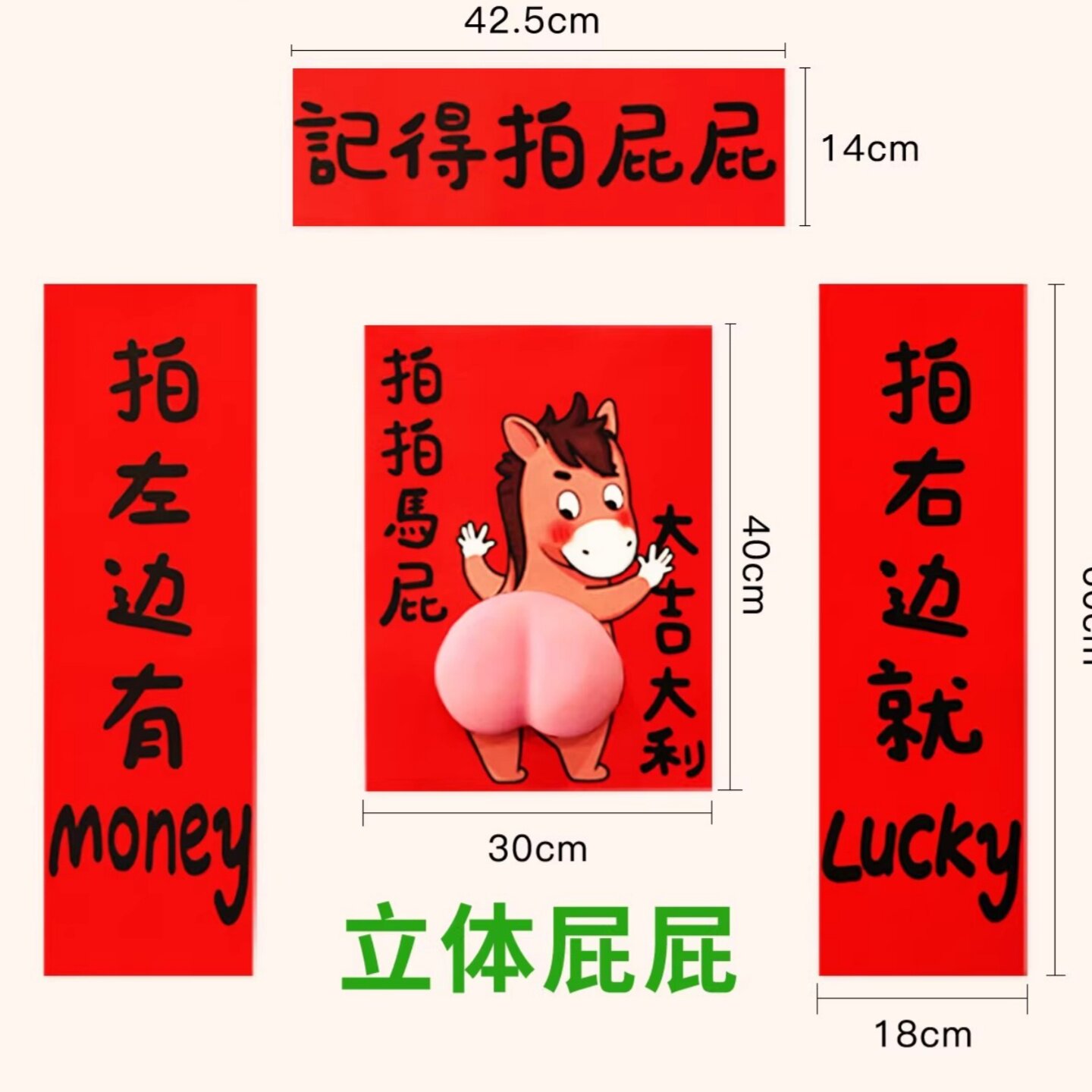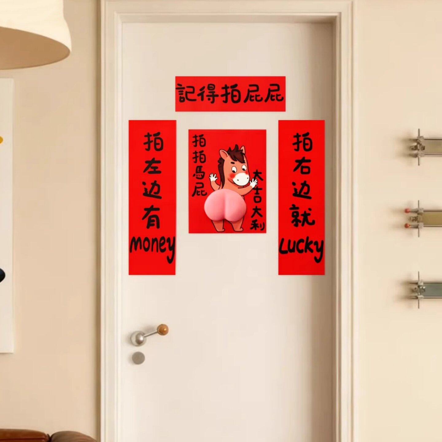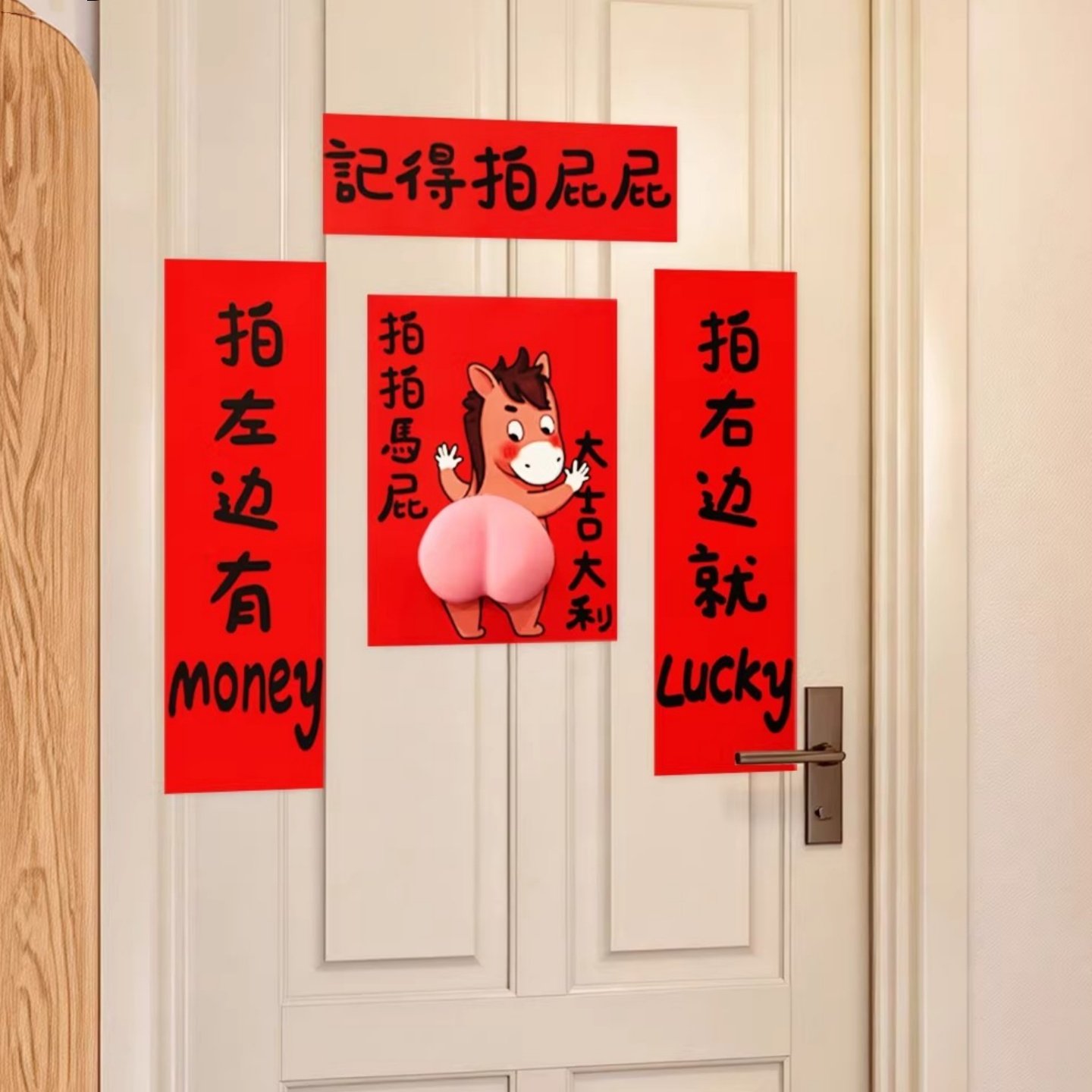 📚 拍拍马屁春联搞笑立体马屁对联新年过年入户福字门贴装饰2026马年