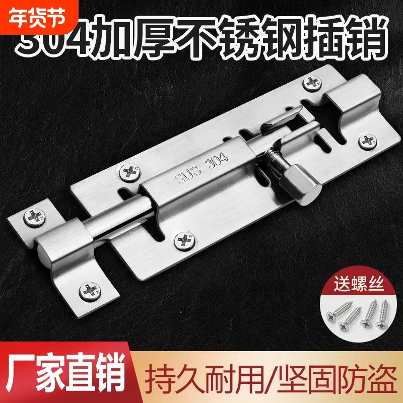 📚 304不锈钢明插销门栓门扣防盗门锁扣门闩木门卫生间老式加厚门销