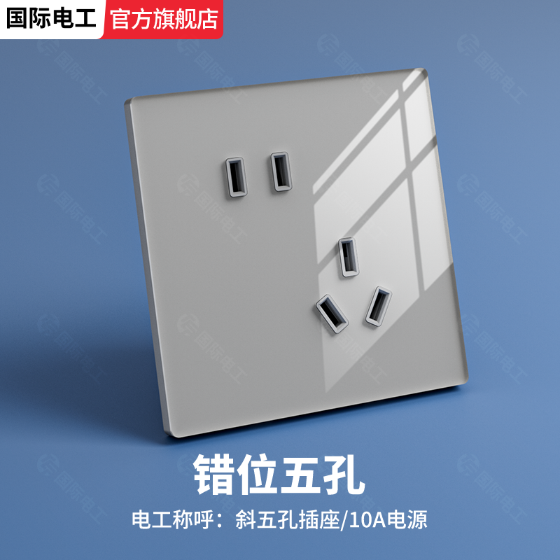 📚 国际电工错位五孔插座面板带开关暗装斜5孔多孔位86型家用灰色usb