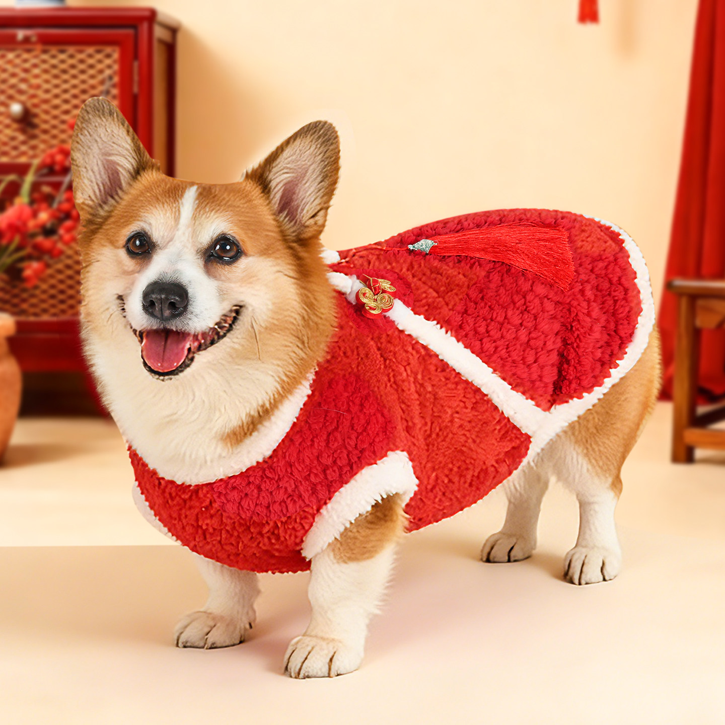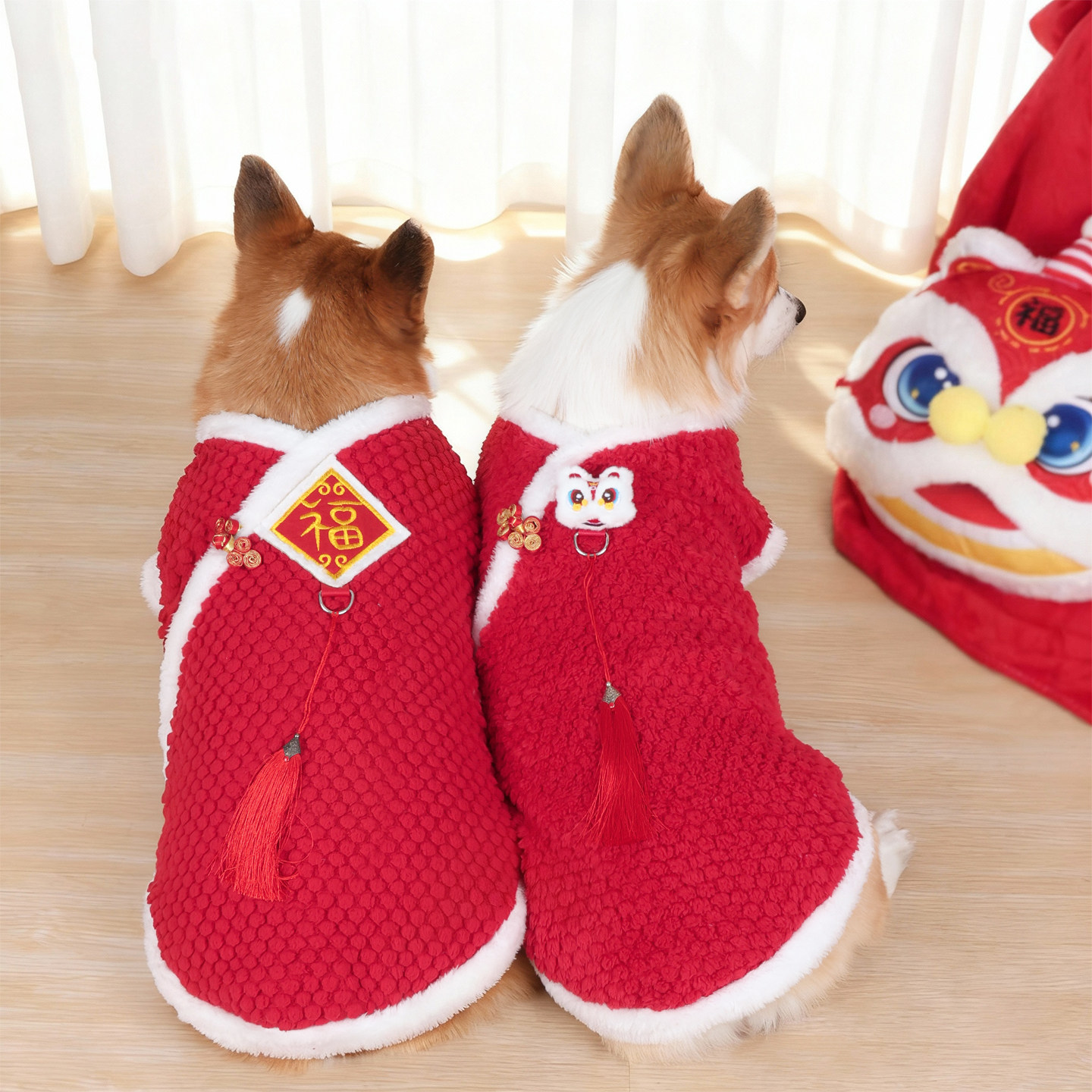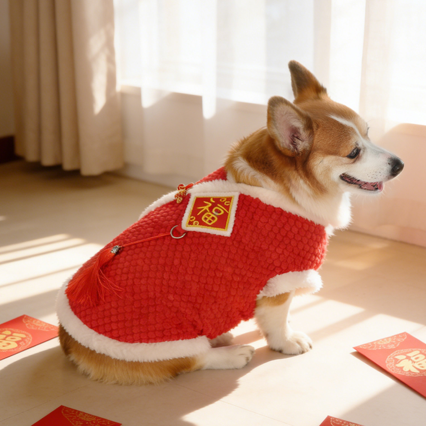 📚 宠物狗狗衣服喜庆新年服过年装柯基泰迪中型犬秋冬季保暖加绒背心