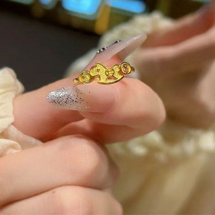 📚 马上有钱黄金色招财小金马戒指女2026新款生肖马本命年铜钱指环