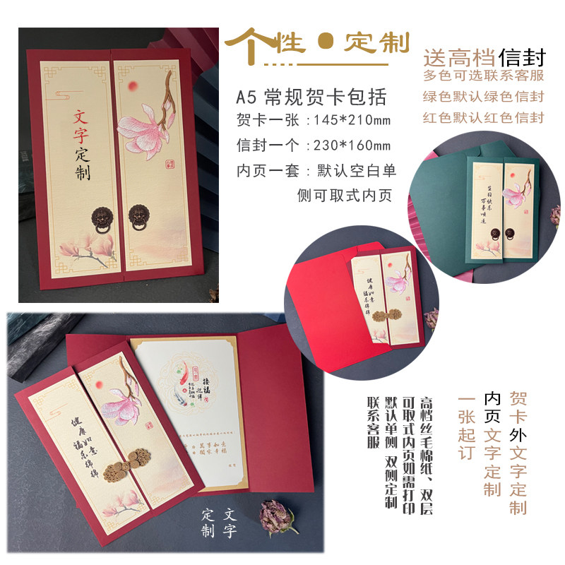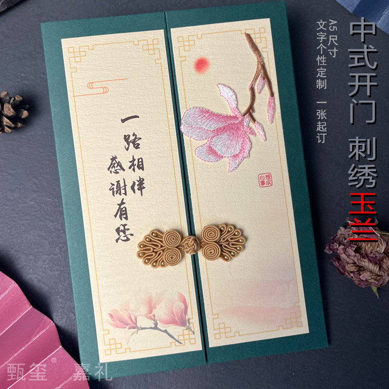 📚 中式刺绣玉兰商务新年贺卡定制送客户领导朋友老师员工退休祝福卡