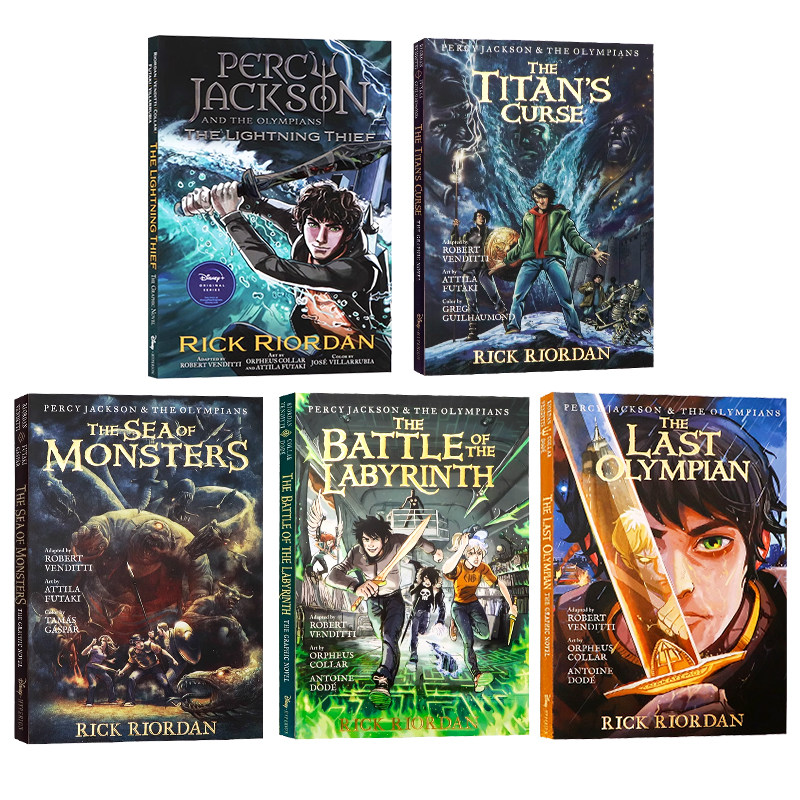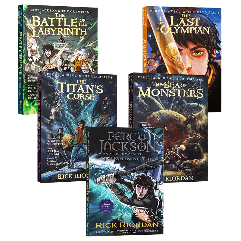 📚 波西杰克逊漫画版1-5册合售 英文原版 Percy Jackson全彩漫画小说 魔兽之海/迷宫之战/巨神之咒/神火之盗/终末之神 青少年课外读物
