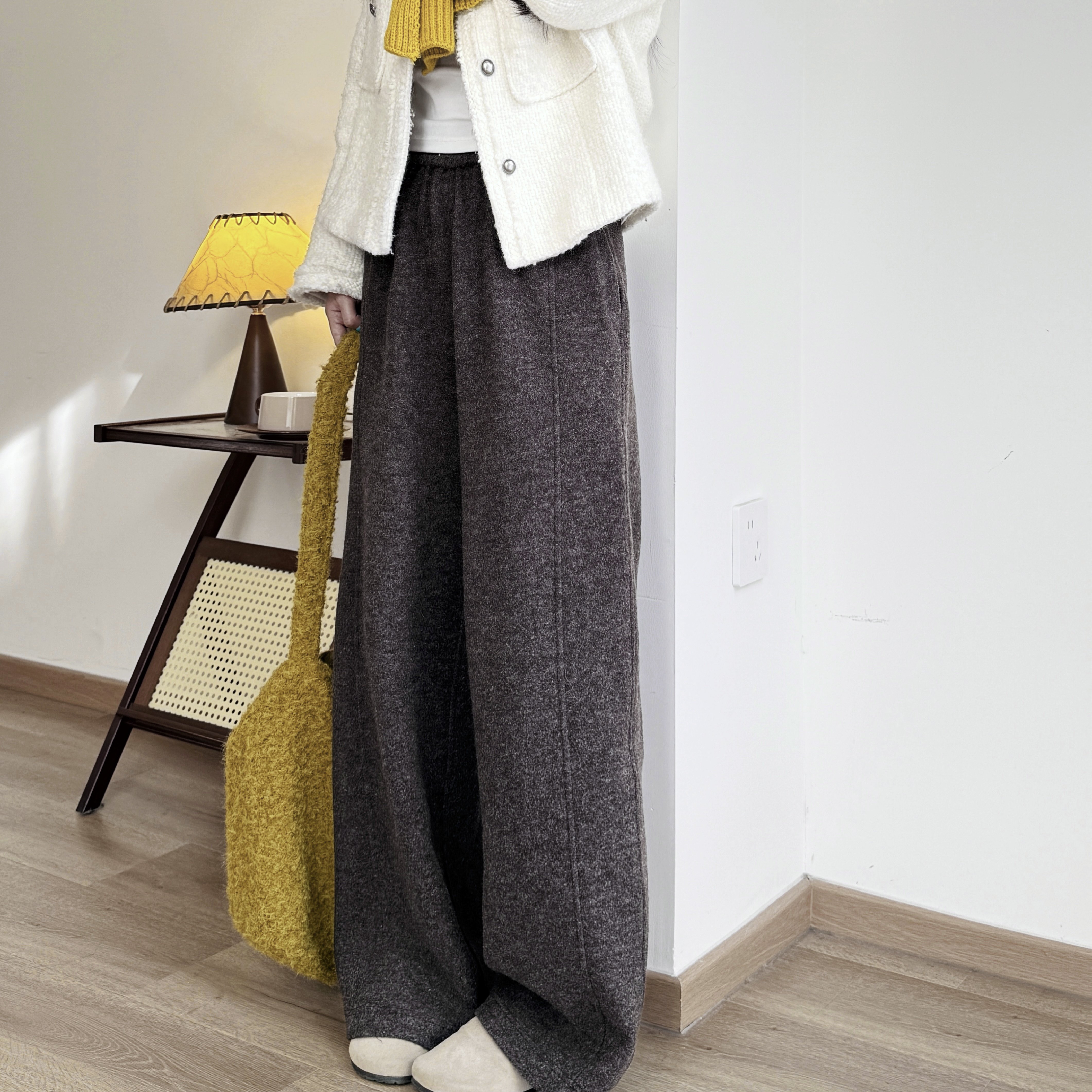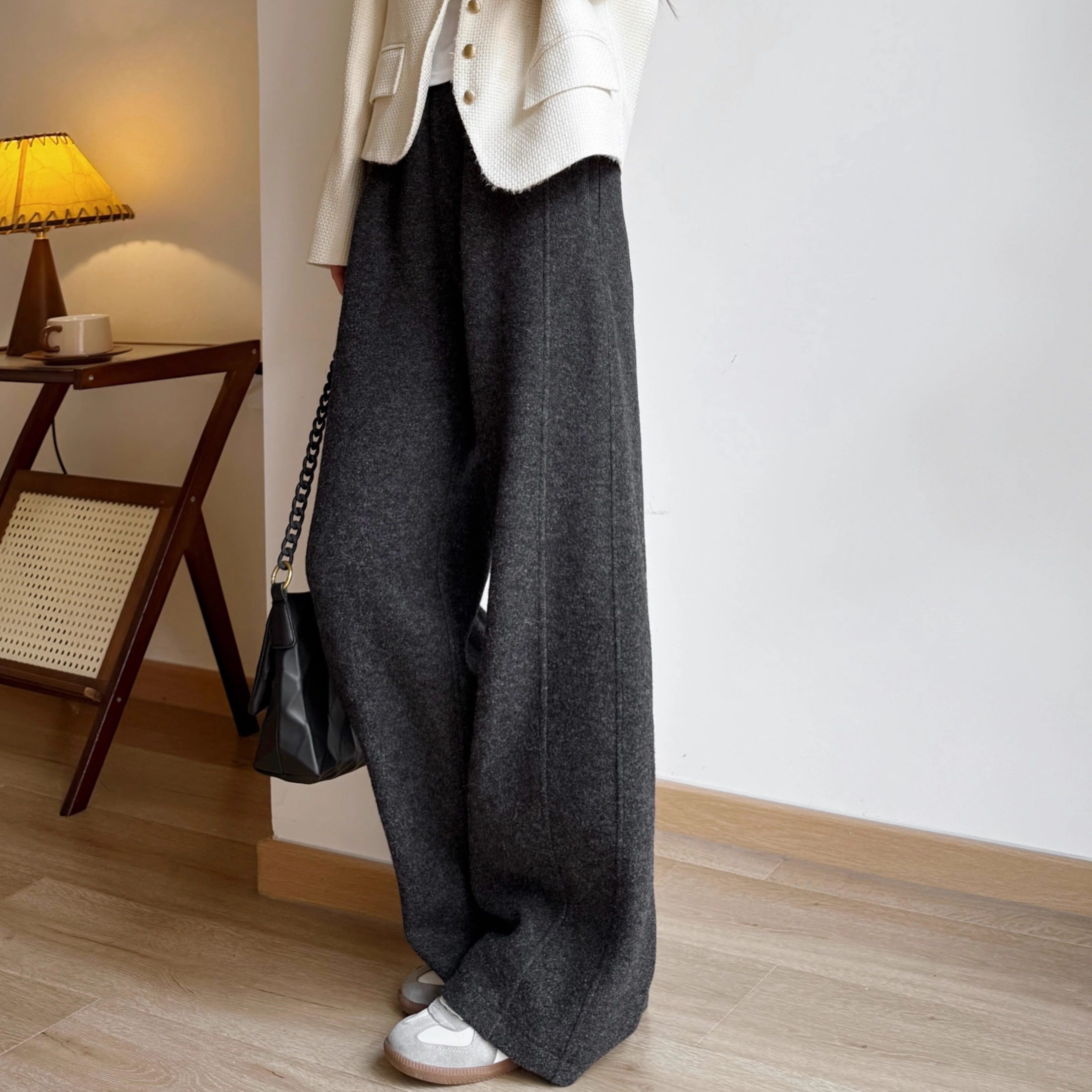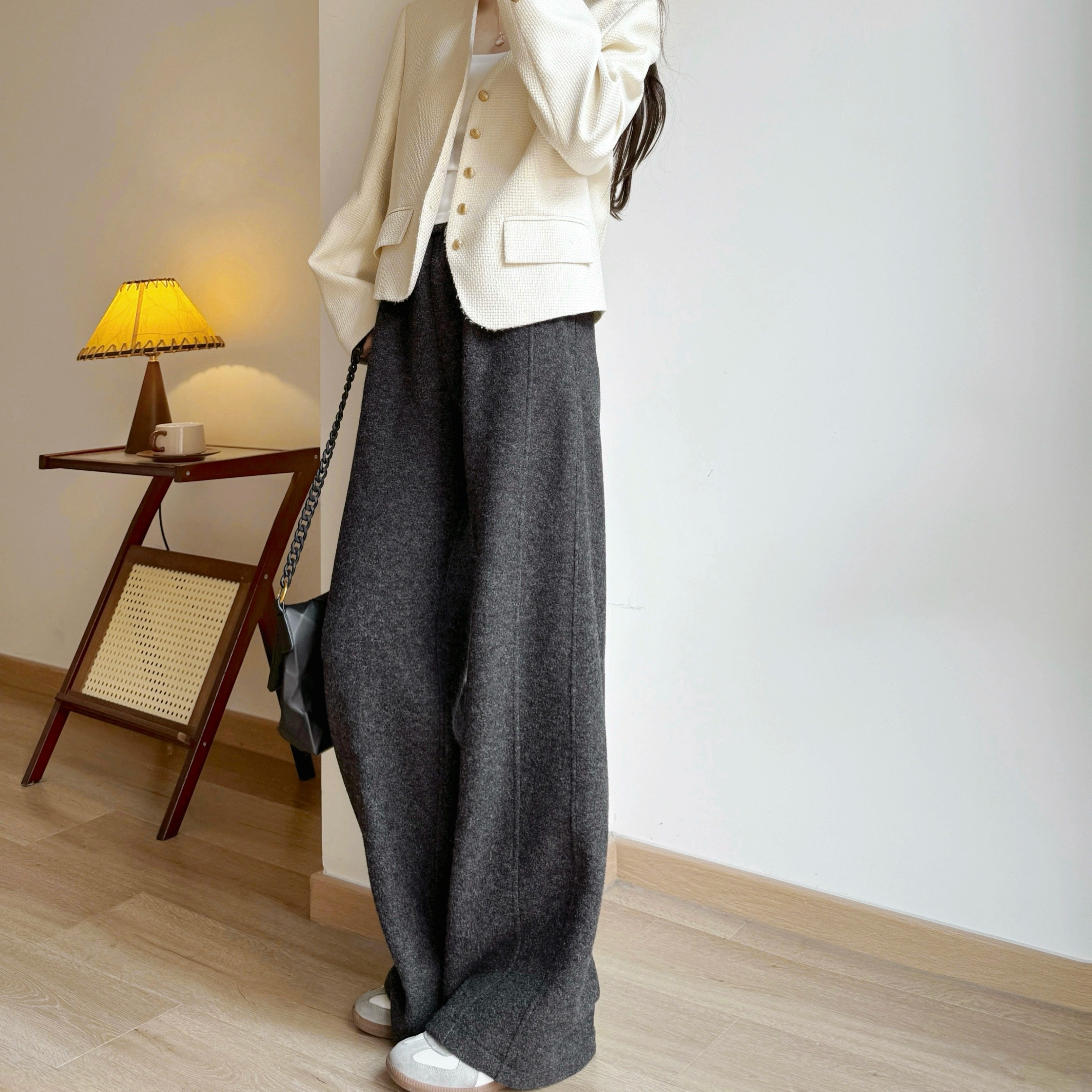 📚 独家自制。去年升级款 弹力羊毛呢混纺直筒长裤阔腿裤 深灰色显瘦