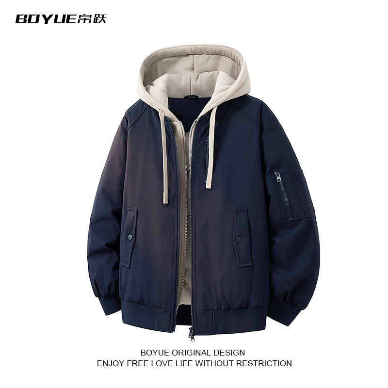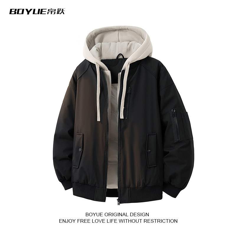 📚 BOYUE帛跃工装假两件连帽冲锋外套小众休闲复古街头保暖男女棉服