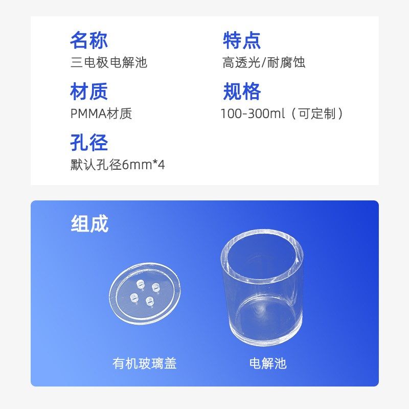 📚 三电极电解池电化学实验电解槽有机玻璃电解槽实验装置电解电极