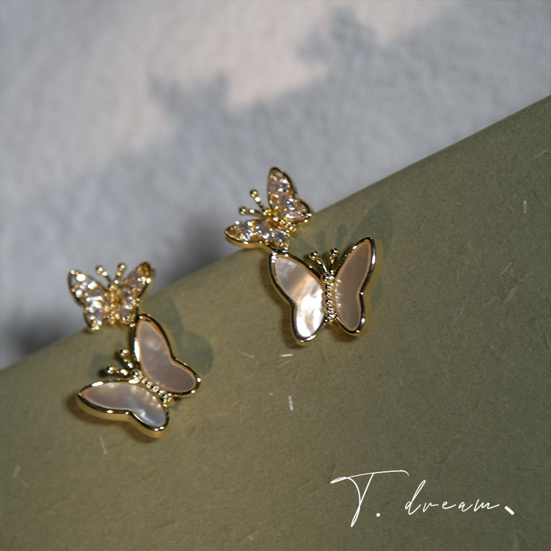 📚 《陪伴你》母贝锆石蝴蝶耳环小众设计高级感小巧耳饰耳钉2026新款