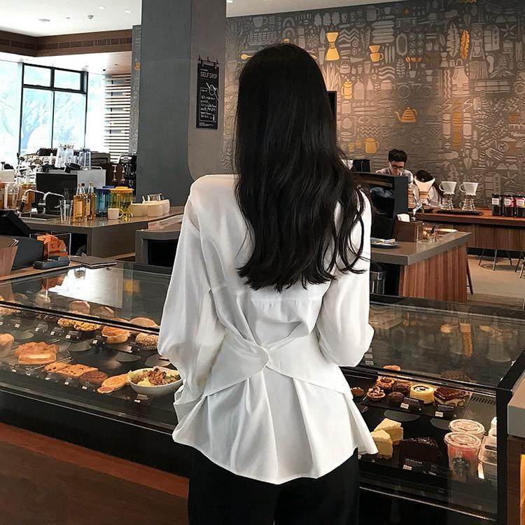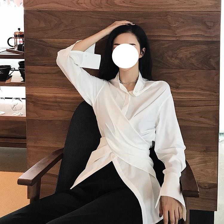📚 新闻女王文慧心佘诗曼同款衬衫女宽松百搭不规则显瘦长袖衬衣外套