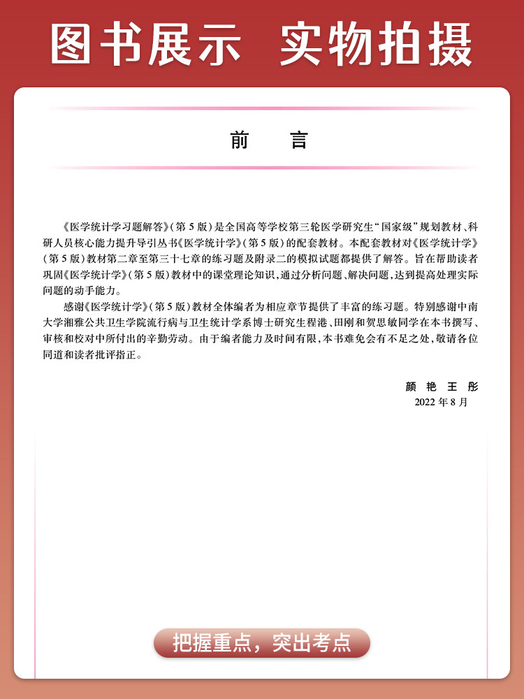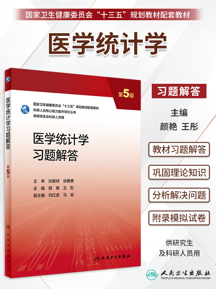 📚 医学统计学习题解答 第5版第五版 研究生临床配套教材科研人员核心人员能力提升导引丛书 颜艳 王彤 人民卫生出版社 9787117337465