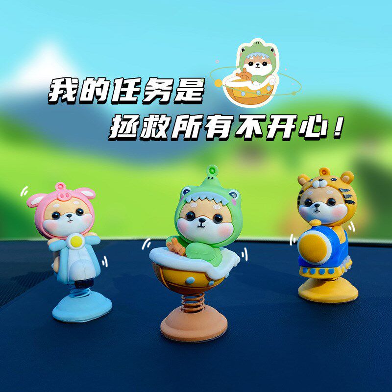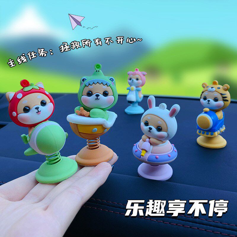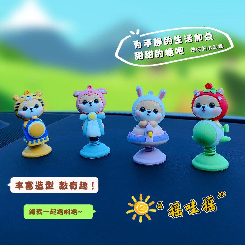 📚 可爱公仔汽车摆件小财柴摇摇乐解压车载装饰品卡通汽车中控台摆件