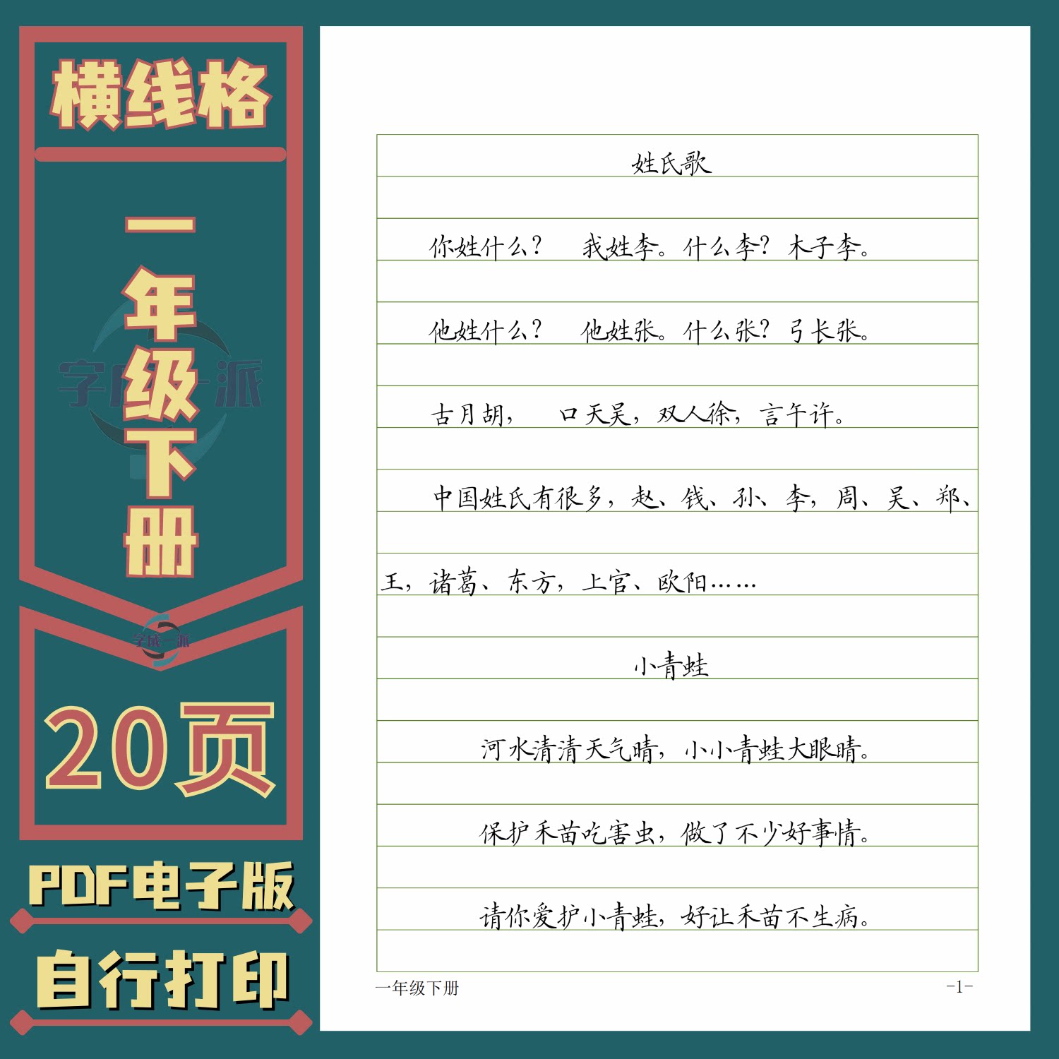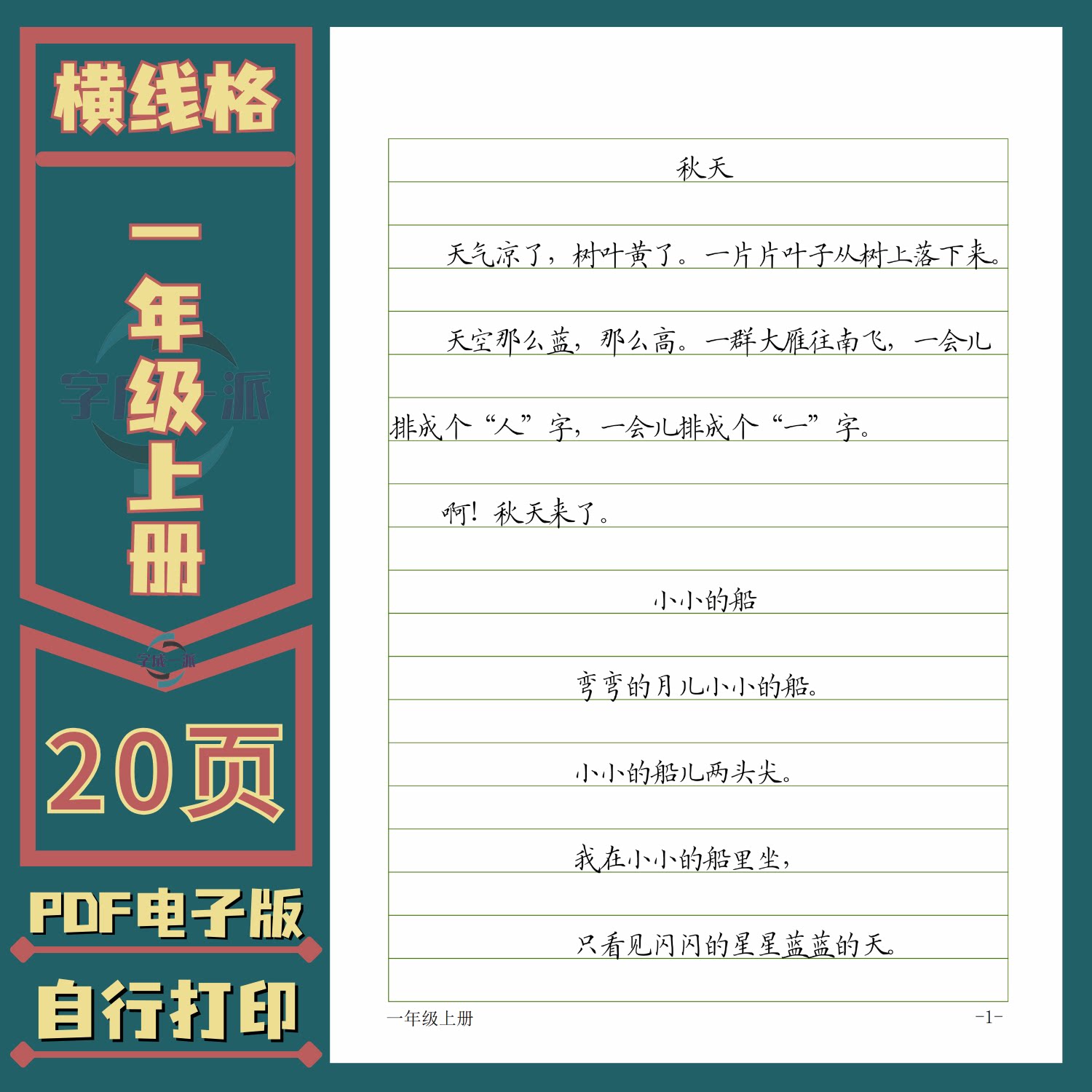 📚 小学一二三四五六年级语文教材同步课文节选横线格练字帖电子版