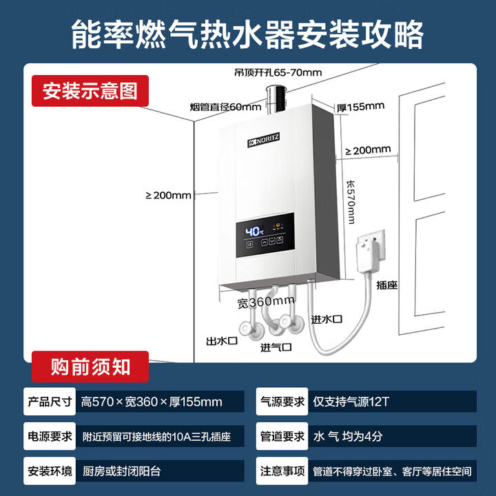 📚 NORITZ/能率JSQ25-E3/13E3/16E3FEX恒温强排CO防护16升燃气热水器