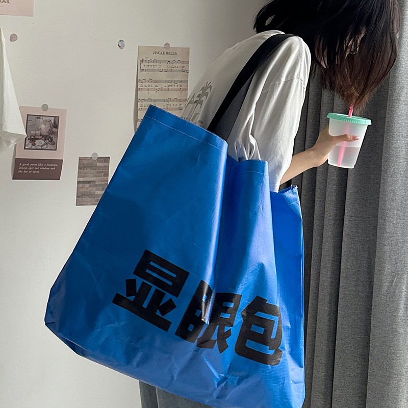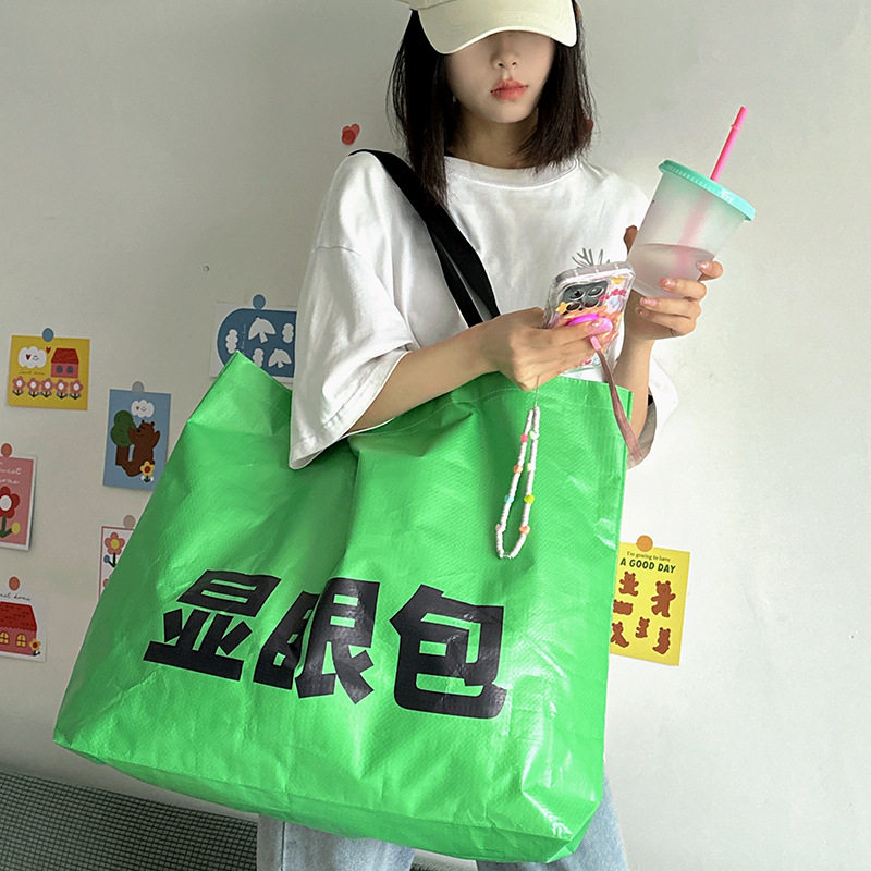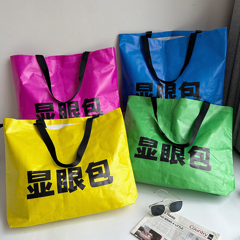 📚 超大号编织袋网红单肩手提袋显眼包蛇皮袋加大超市购物袋个性时尚