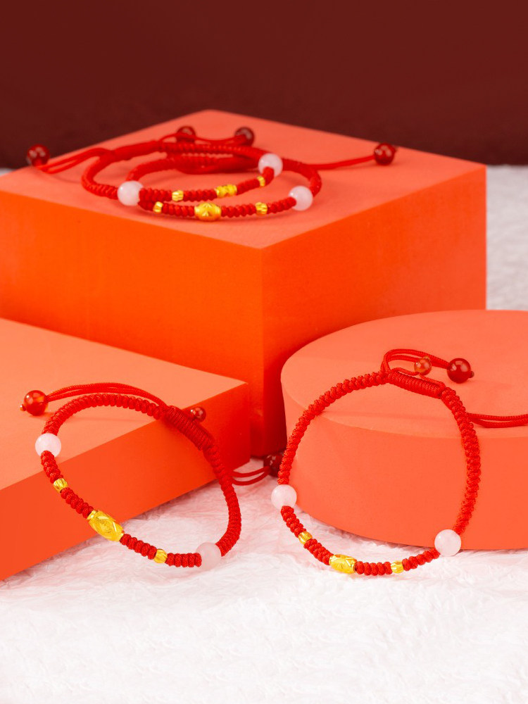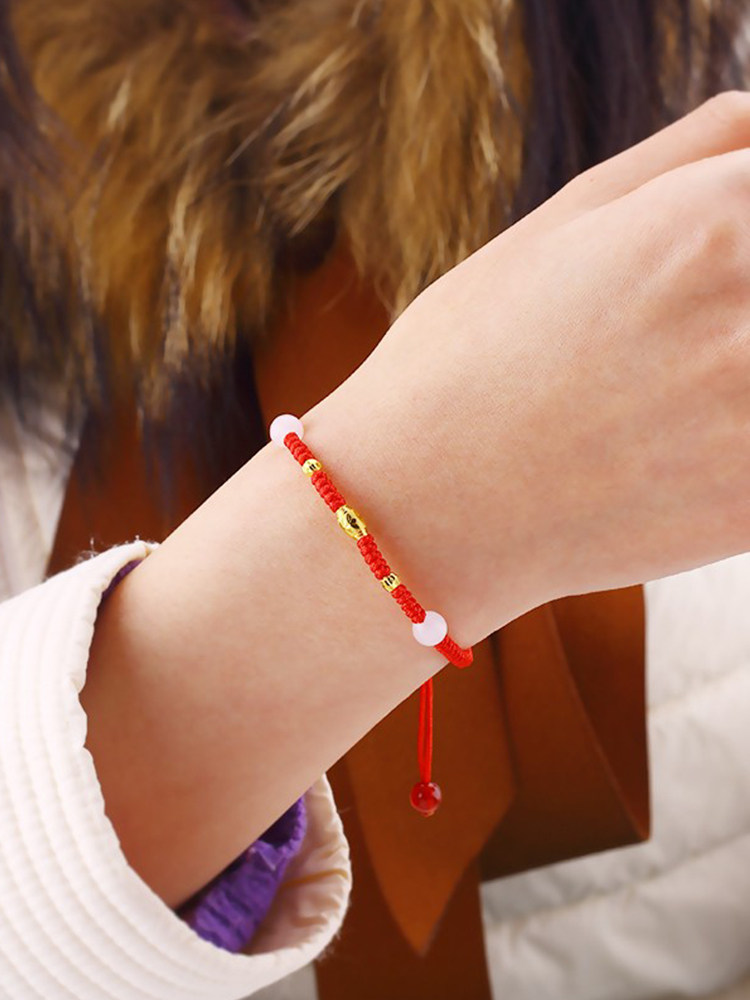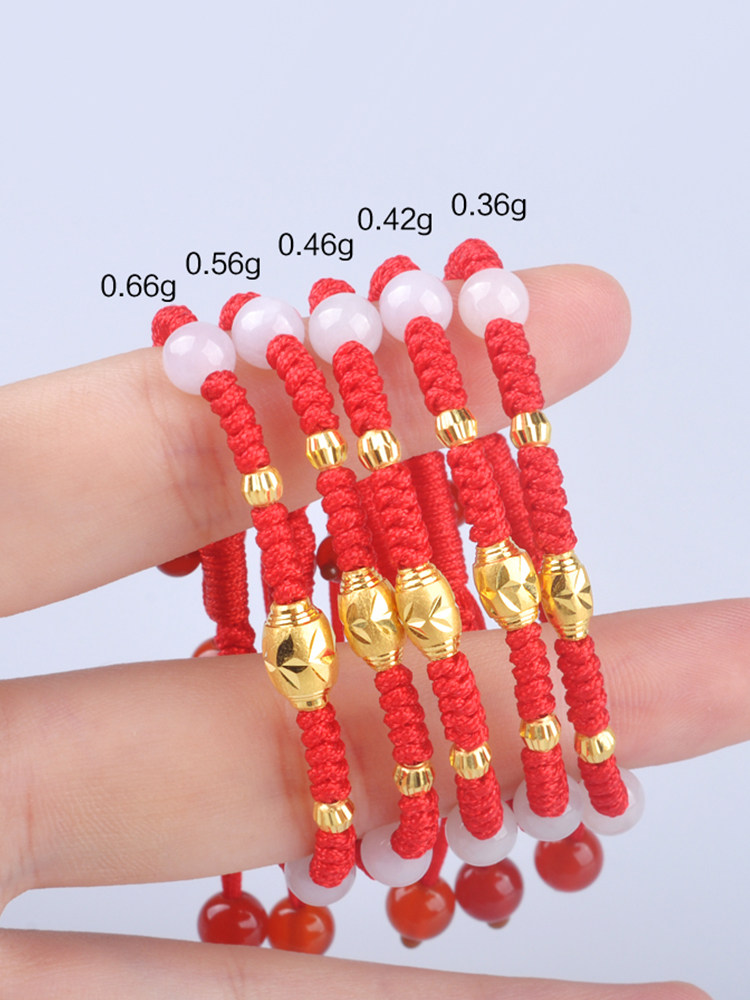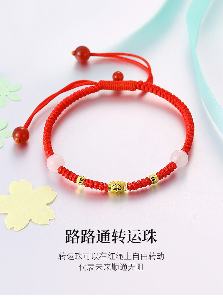 📚 黄金转运珠路路通玉珠红绳黄金手链足金本命年红绳男女款送礼